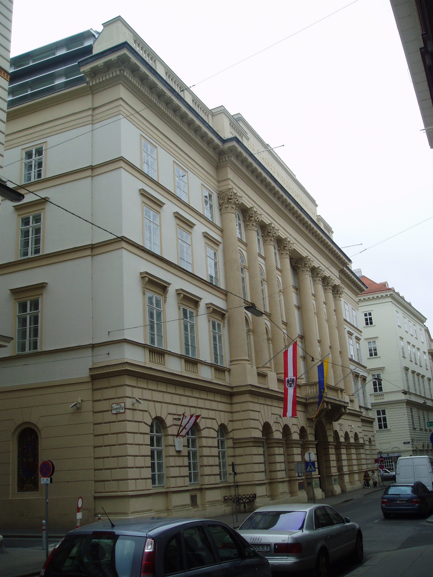Nyilvános 1834 | 3644 | Herrengasse 13. Landhaus (a régi országház) | A hatalmas palota építési ideje nem ismert, de az 1500-as években már állt. Azóta többször átépítették, jelenlegi klasszicista köntösét 1832-48 között kapta. Ebben a palotában ült össze évszázadokon keresztül, I. Miksa uralkodása óta az alsó-ausztriai rendi gyűlés. Ma az alsó-ausztriai kormány hivatala. Klasszicista Festsaal-ja (ünnepi terem) nevezetes hangversenyek színhelye volt. Falai között megfordult Schubert, Beethoven, s itt adta első bécsi koncertjét egy 12 éves magyar csodagyermek, Liszt Ferenc. |