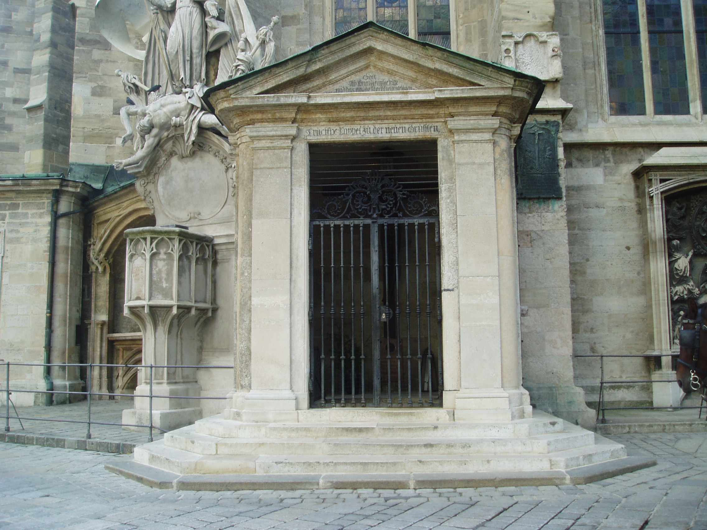 Nyilvános 1196 | 2531 | Ha kívülről megkerüljük a Stephansdom épületét, a hátsó oldalánál, ahol a fiákeresek gyülekeznek, egy kis oldalkápolnát találunk. Itt ravatalozták fel a beszentelés után Mozart holttestét és innét vitték ki a St.Marx-temetőbe, hogy aztán sírhelye örökre feledésbe merüljön. Ha benézünk a kápolna rácsain, Mozart emléktábláját olvashatjuk. | |