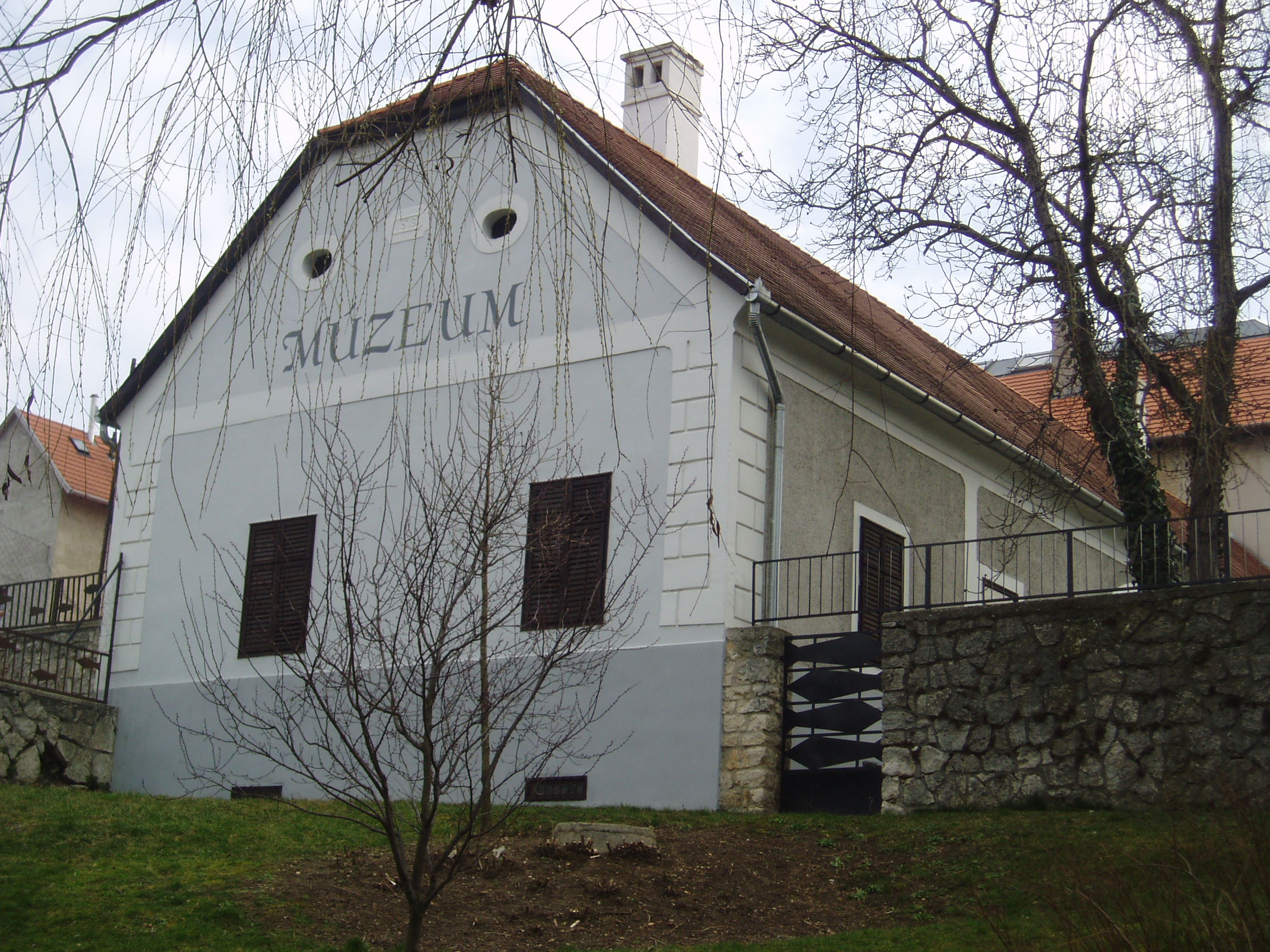 Nyilvános 1433 | 2138 | Tapolca: Templom domb 8. Múzeum | A múzeum épülete, az ún. Kántorház - a város védett építészeti emléke - Tapolca történelmi városközpontjában, a Malom-tó fölötti Templom dombon található. Az épület magja 1773-ban épült iskolának és tanítói lakásnak. Mai küllemének meghatározó jellemzőit, boltíves tornácát az iskola 1813-as kibővítésekor kapta. Ide járt elemi iskolába az 1770-es évek elején a város nagy szülötte, Batsányi János költő. Az iskolában egészen 1884-ig folyt oktatás, később pedig a mindenkori r. k. kántortanító lakott benne. Az épületet 1979/80-ban újíttatta fel a város, s benne Tapolca múzeumát helyezte el. A múzeumban jelenleg iskolatörténeti kiállítás és Batsányi János életét és korát bemutató kiállítás látható (lásd a következő képeket). A felvétel 2007 februárjában készült. Felh. irod.: Látnivalók Veszprém megyében. Miskolc, Well-PRess, 2000 Hangodi László: Múltbanéző - kiállításvezető a Tapolcai Városi Múzeum tárlataihoz. Tapolca, 2006 |