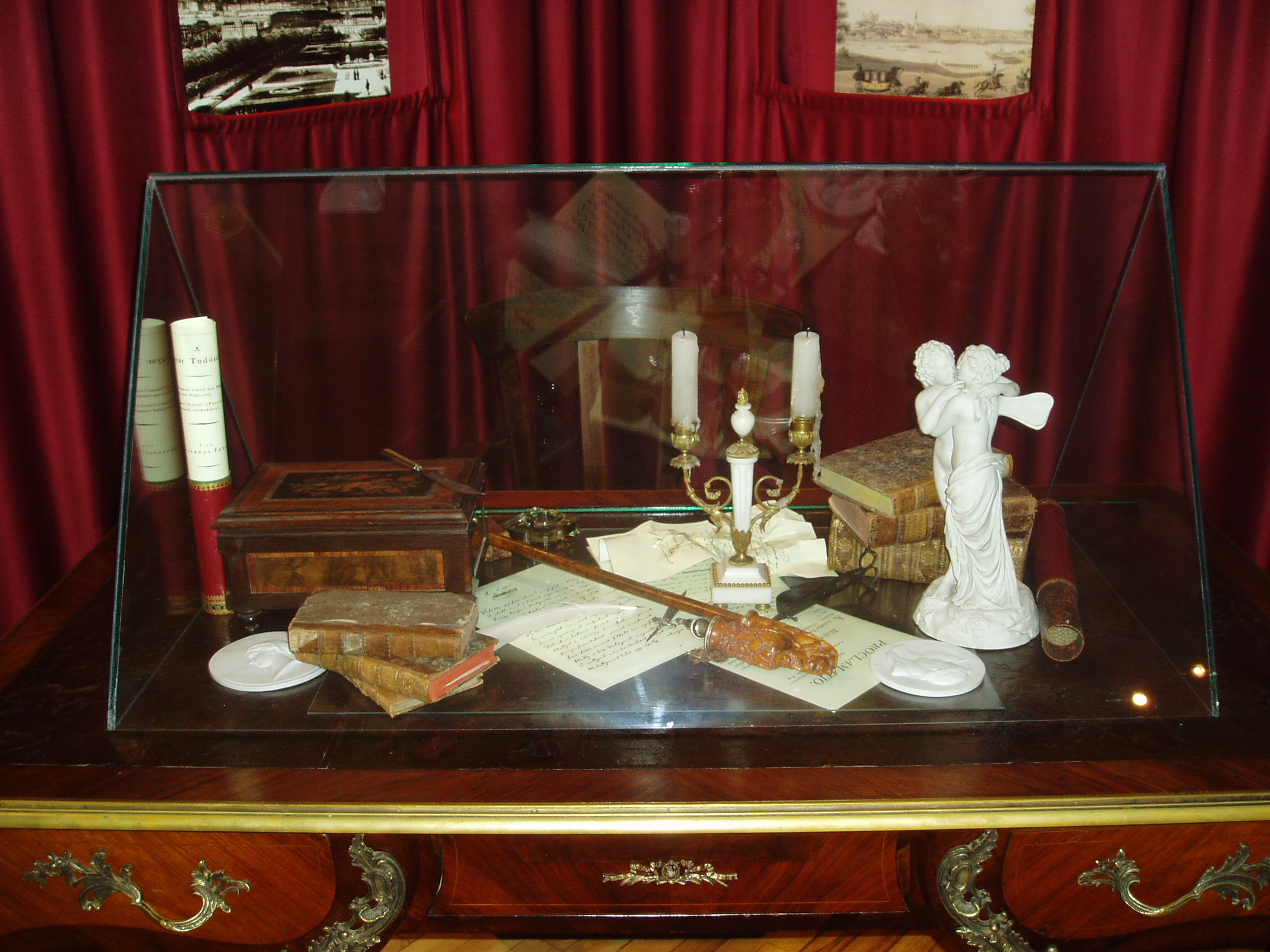 Nyilvános 1018 | 1707 | Tapolca: Templom domb 8. Múzeum | A múzeum épülete, az ún. Kántorház - a város védett építészeti emléke - Tapolca történelmi városközpontjában, a Malom-tó fölötti Templom dombon található. Ide járt elemi iskolába az 1770-es évek elején város nagy szülötte, Batsányi János költő. Részlet a Batsányi Emlékkiállításról: dolgozószoba-sarok. Az itt kiállított tárgyak konkrétan nem kötődnek Batsányihoz, csak korabeliek, illetve életének és pályájának főbb jellemzőit jelenítik meg. A Napóleon-plakett bonapartista irányultságát szimbolizálja. Ámor és Psyché szobra pedig feleségével,a bécsi származású költőnővel, Baumberg Gabriellával megélt és leélt múlhatatlan szerelem kifejezőjeként emlékeztet kettőjük kapcsolatára. A felvétel 2007 februárjában készült. Felh. irod.: Látnivalók Veszprém megyében. Miskolc, Well-PRess, 2000 Hangodi László: Múltbanéző - kiállításvezető a Tapolcai Városi Múzeum tárlataihoz. Tapolca, 2006 |