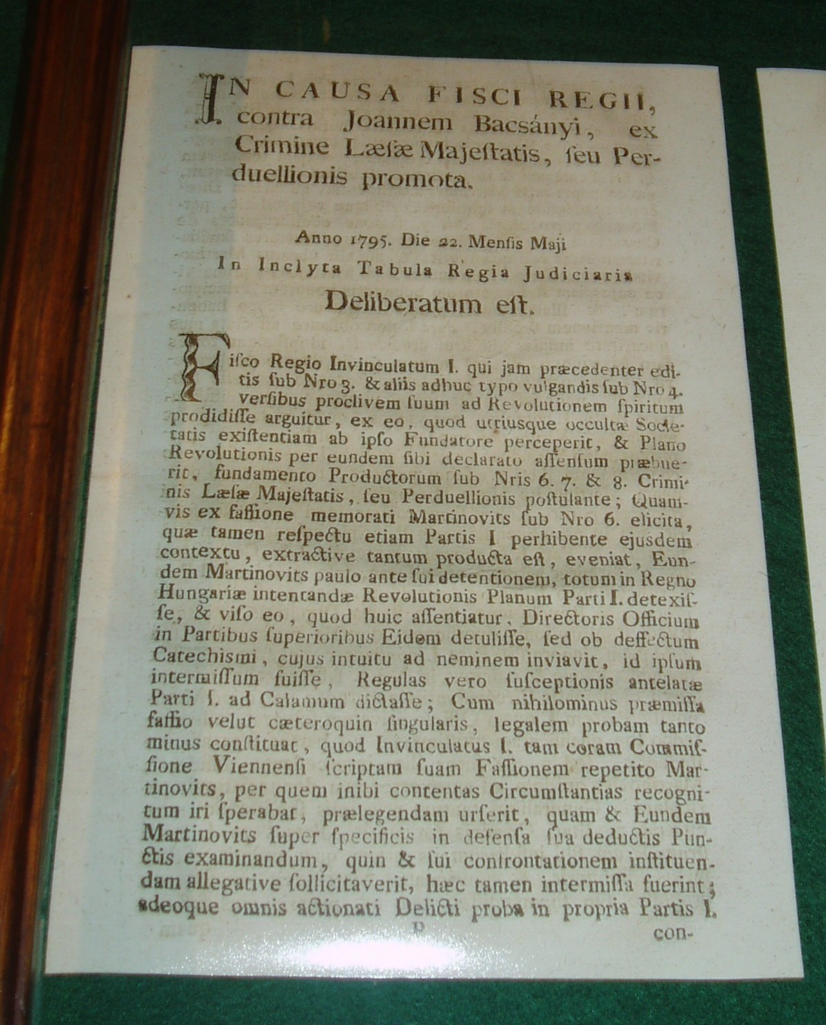 Nyilvános 1034 | 1735 | Tapolca: Templom domb 8. Múzeum | A múzeum épülete, az ún. Kántorház - a város védett építészeti emléke - Tapolca történelmi városközpontjában, a Malom-tó fölötti Templom dombon található. Ide járt elemi iskolába az 1770-es évek elején város nagy szülötte, Batsányi János költő. Részlet a Batsányi Emlékkiállításról: az 1795-ben Pesten latin nyelven kiadott, a Martinovics-összeesküvésben részt vevők vádiratából a Batsányira vonatkozó oldalak. A felvétel 2007 februárjában készült. Felh. irod.: Látnivalók Veszprém megyében. Miskolc, Well-PRess, 2000 Hangodi László: Múltbanéző - kiállításvezető a Tapolcai Városi Múzeum tárlataihoz. Tapolca, 2006 |