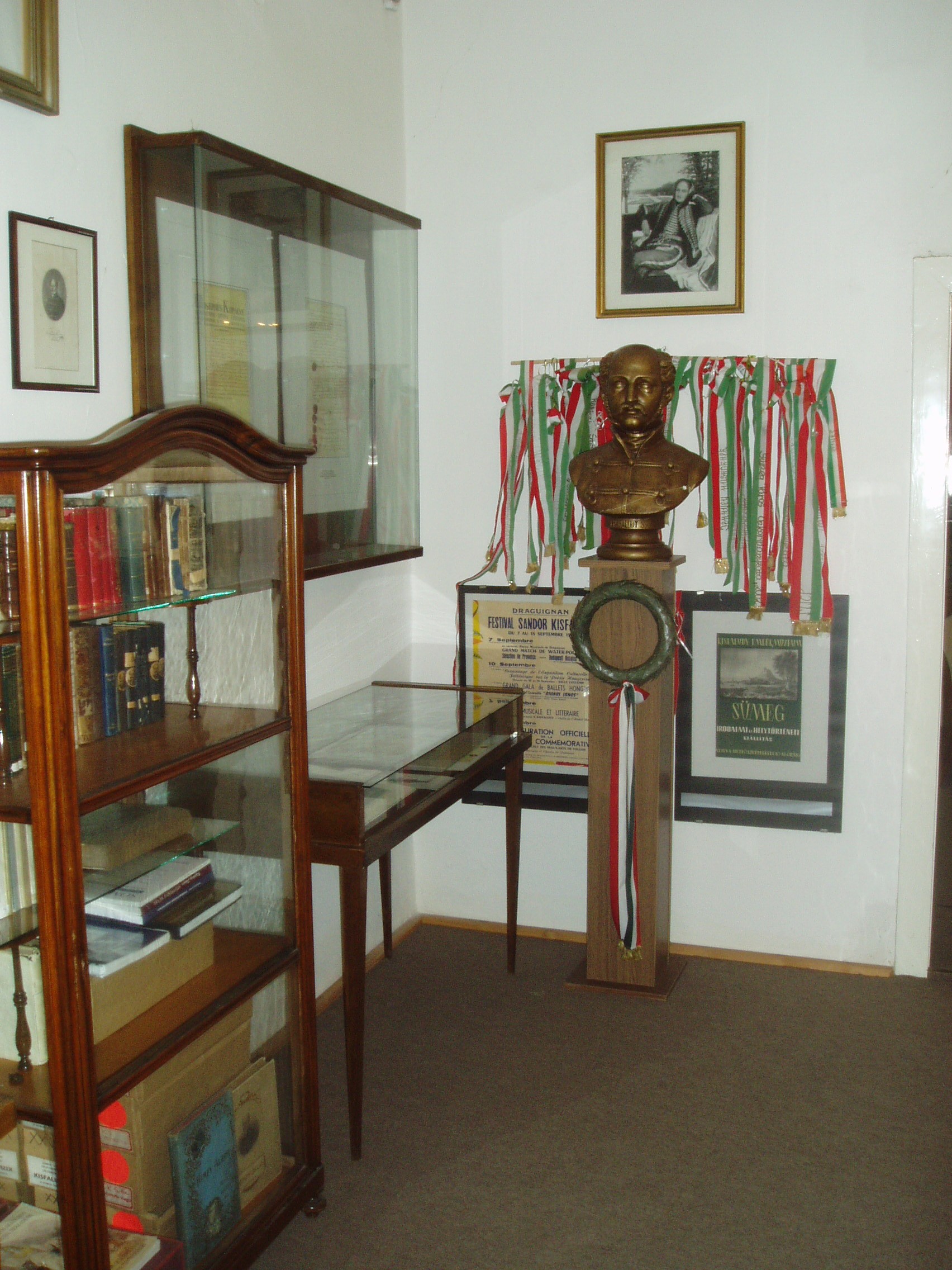 Nyilvános 959 | 1465 | Sümeg, Kisfaludy tér 2. | Ebben a házban, amely ma a Városi Múzeum otthona, született és halt meg Kisfaludy Sándor. A XVII. században épült ház eredetileg a Sándorffy család tulajdona volt, a Kisfaludyakra örökség útján maradt. A XIX. században klasszicizáló stílusban többször is átépítették a boltíves barokk kúriát, ittlakása idején Kisfaludy Sándor is bővíttette. A költő 1772. szept. 27-én látta meg itt a napvilágot. Hat éves volt, amikor a család Tétre költözött (Károly öccse ott született 1788-ban). 1805-ben, házasságkötése után néhány évvel költözött vissza a szülőházába, s haláláig itt volt az otthona. Miután 1832-ben elveszítette szeretett feleségét, Szegedi Rózát, az idős költő újra megnősült, azonban második felesége, Vajda Amália is hamarosan meghalt. A költő ebben a házban halt meg 1844. október 28-án. Sírja a sümegi temetőben van (lásd: Sümeg, Temető). A szülőház 1950 óta múzeum. Szobái közül kettő őrzi egykori híres lakója emlékét. Személyes és családi tárgyai, bútorai, könyvek, képek ismertetik meg a látogatóval a Himfy-versekkel és a balatoni várak romantikus regéit megörökítő műveivel a maga korában nagy népszerűségnek örvendő költő életét és korát. A fénykép 2007 júniusában készült. Felh. irod.: Koppány Tibor - Kozák Károly: Sümeg útikalauz. Veszprém, Idegenforgalmi Hivatal, 1965 Sümegi kalauz. Sümeg, Sümegi Fórum alapítvány, 1993 Kisfaludy Sándor. Veszprém, Veszprém Megyei Múzeumi Igazgatóság. /Pannon Panteon 1./ |