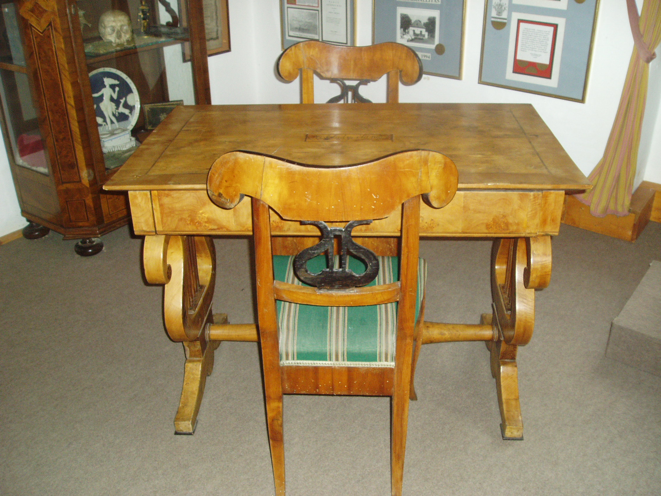 Nyilvános 930 | 1398 | Sümeg, Kisfaludy tér 2. | Ebben a házban, amely ma a Városi Múzeum otthona, született és halt meg Kisfaludy Sándor. A XVII. században épült ház eredetileg a Sándorffy család tulajdona volt, a Kisfaludyakra örökség útján maradt. A XIX. században klasszicizáló stílusban többször is átépítették a boltíves barokk kúriát, ittlakása idején Kisfaludy Sándor is bővíttette. A költő 1772. szept. 27-én látta meg itt a napvilágot. Hat éves volt, amikor a család Tétre költözött (Károly öccse ott született 1788-ban). 1805-ben, házasságkötése után néhány évvel költözött vissza a szülőházába, s haláláig itt volt az otthona. Miután 1832-ben elveszítette szeretett feleségét, Szegedi Rózát, az idős költő újra megnősült, azonban második felesége, Vajda Amália is hamarosan meghalt. A költő ebben a házban halt meg 1844. október 28-án. Sírja a sümegi temetőben van (lásd: Sümeg, Temető). A szülőház 1950 óta múzeum. Szobái közül kettő őrzi egykori híres lakója emlékét. Személyes és családi tárgyai, bútorai, könyvek, képek ismertetik meg a látogatóval a Himfy-versekkel és a balatoni várak romantikus regéit megörökítő műveivel a maga korában nagy népszerűségnek örvendő költő életét és korát. Az első szoba eredeti relikviái a költő által használt asztal és két szék. A fénykép 2007 júniusában készült. Felh. irod.: Koppány Tibor - Kozák Károly: Sümeg útikalauz. Veszprém, Idegenforgalmi Hivatal, 1965 Sümegi kalauz. Sümeg, Sümegi Fórum alapítvány, 1993 Kisfaludy Sándor. Veszprém, Veszprém Megyei Múzeumi Igazgatóság. /Pannon Panteon 1./ |