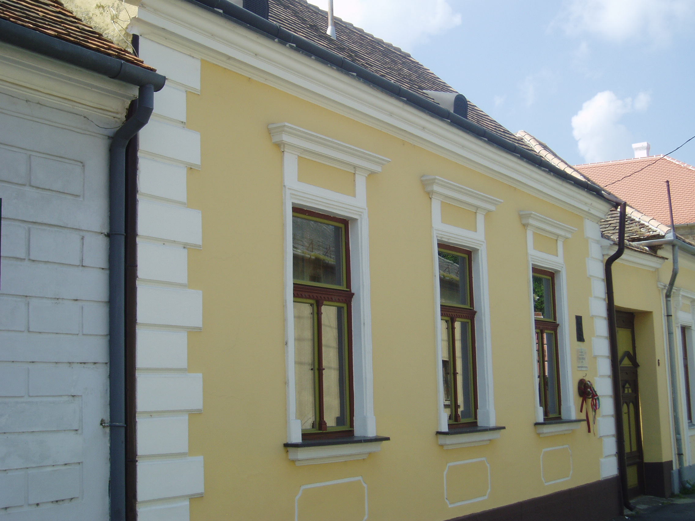 Nyilvános 948 | 1482 | Sümeg, Ramassetter utca 6. | A Ramasetter utca házai jórészt a XVII. század második felében épültek, bár a legtöbbet később átalakították. A 6. számú ház homlokzatán olvasható emléktábla szerint itt született Entz Ferenc. Entz Ferenc (Sümeg, 1805. dec. 6. – Promontor–Budafok, 1877. máj. 8.) orvos, szőlész, kertész. A szabadságharcban honvéd főorvos volt, ezért Világos után eltiltották az orvosi tevékenységtől. Ekkor fordult a kertészet és szőlészet elméleti és gyakorlati kérdései felé. Megírta korának alapvető kertészeti szakkönyvét. Nagy érdeme a kertészeti műnyelv kialakítása, amelyre a mai kertészeti szaknyelv is épül. 1853-ban Pesten létrehozta az első magyar kertészképző iskolát. Édespja a város köztemetőjében nyugszik (lásd: Sümeg, Temető: Entz Ferenc sírja). A fénykép 2007 júniusában készült. Felh. irod.: Koppány Tibor - Kozák Károly: Sümeg útikalauz. Veszprém, Idegenforgalmi Hivatal, 1965 Veszprém megyei életrajzi lexikon. Veszprém, Veszprém Megyei Önkormányzat Közgyűlése, 1998 www.ekmk.hu/emlekhely/Emlekhelyek.html |