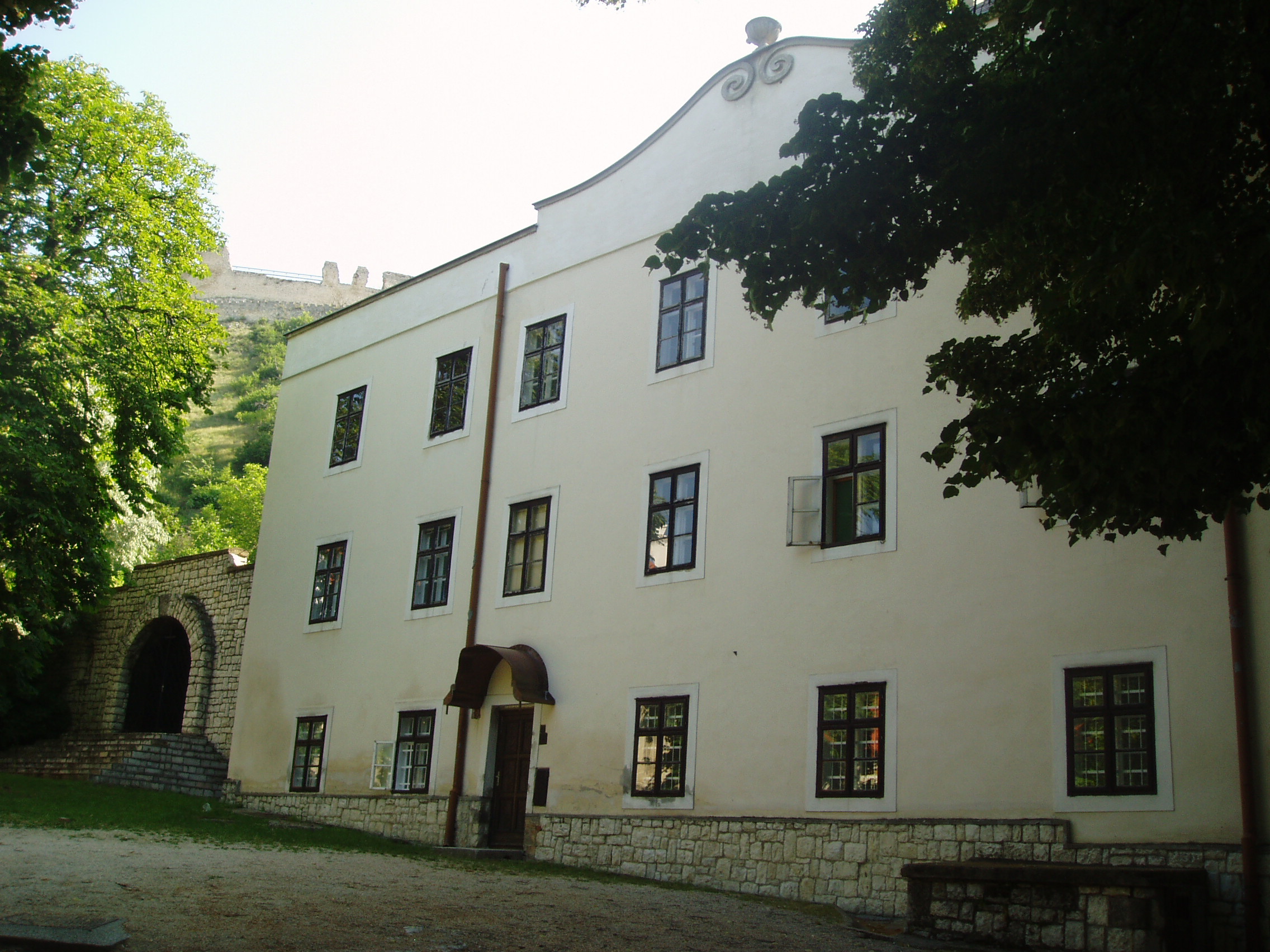 Nyilvános 1059 | 1974 | Sümeg, Szent István tér 7. Ferences kolostor | A ferences kolostor és templom épülettömbje a vár után (lásd: Sümeg, Vár) Sümeg legrégibb műemléke. A ferences atyákat a XVII. közepén Széchenyi György püspök hozta Sümegre a török elől idemenekült lakosság kedvéért. 1649 körül először az egyhajós, akkor még torony nélküli templom épült meg. A hozzá tartozó vastag falú, erődítmény jellegű kolostor néhány évvel később lett készen. Második emelettel az 1720-as években bővítették ki. Az egész épületegyüttest 1949 körül számottevően átalakították, a kolostor barokk homlokzatát bevakolták. A XVII. századi rendházra kívülről csupán a kapu fölé helyezett Széchenyi-címeres, 1652-ből származó feliratos kőtábla emlékeztet, amely a barokk stílus egyik legrégibb hazai emléke. Itt működött a XVII. századi ellenreformáció egyik fontos dunántúli központja. A szerzetesek járták a végvárakat és falvakat, s fejtettek ki térítő, illetve szociális tevékenységet, a kolostorban pedig messze vidéken híres hitvitákat tartottak. A lakosság kedvelte a ferences atyákat, akik a szegénység vállalása mellett a tudomány művelői, egyes tagjaik pedig a haza védelmében vitéz kardforgatók voltak. A fénykép 2007 júniusában készült. Felh. irod.: Koppány Tibor - Kozák Károly: Sümeg útikalauz. Veszprém, Idegenforgalmi Hivatal, 1965 Látnivalók Veszprém megyében. Miskolc, Well-PRess, 2004 Sümegi kalauz. Sümeg, Sümegi Fórum alapítvány, 1993 Hőgyész László: Sümeg évszázadai. Veszprém, 1989 |