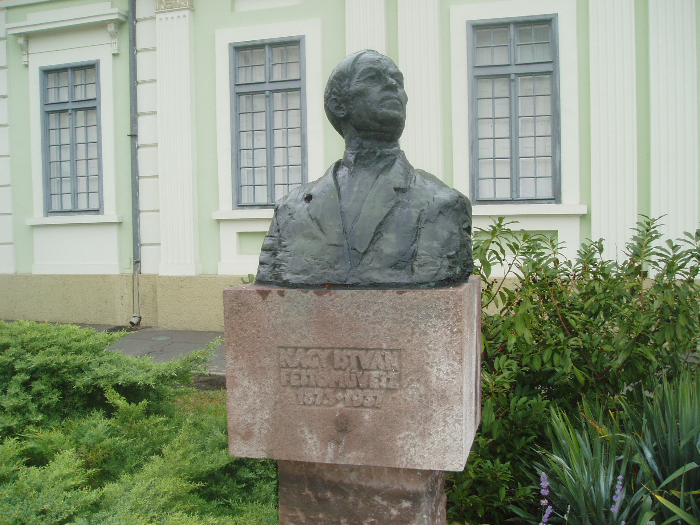Nyilvános 1488 | 3172 | Rövid leírás | Teljes leírás (612 B) | Baja, Arany János utca 1. Az egykori Vojnich-kúria 1820 körül épült klasszicista stílusban. 1946 és 1953 között ez az épület adott otthont a Rudnay Gyulának és az általa vezetett művésztelepnek. A kúria ma a Nagy István Baján élt (lásd: Baja, Nagy István u. 8.) festőről elnevezett képtár otthona. Az épület előtti teret Nagy István bronz mellszobra, Varga Imre alkotása díszíti. A fénykép 2007 októberében készült. Felh. irod.: Látnivalók Bács-Kiskun megyében. Miskolc, Well-PRess, 2002 |