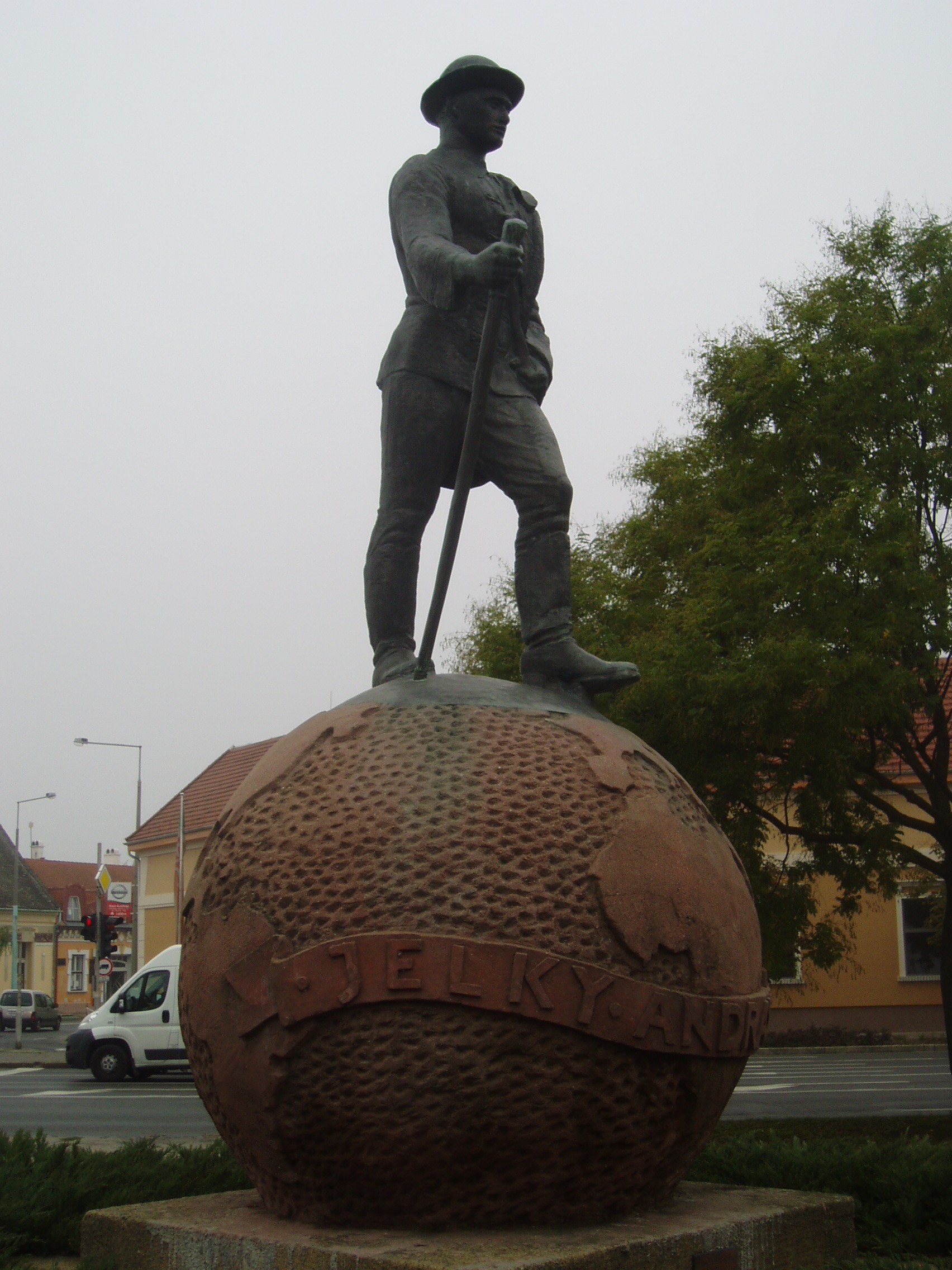 Nyilvános 1146 | 1932 | Baja, Jelky András tér: Jelky András szobra | A város egyik kedves jelképe a bajai születésű, szabólegényből lett világutazó Jelky András földgömbön álló, vándorbotos szoboralakja. A bronzszobor Medgyessy Ferenc, a vasbeton földgömb Miskolczy Ferenc alkotása. Jelky András a Bajai Belvárosi Plébánia anyakönyvi bejegyzése szerint 1738. április 20-án született. Édesapja kiszolgált császári katona volt, aki Baján szabóként dolgozott. Fiát – hasonlóképp annak bátyjához, aki a bécsi császári ruhatárnál szabóskodott – szintén szabónak szánta. 1754. március 13-án kelt vándorútra. Európai kalandozásai közben Nimvegenben erőszakkal besorozták katonának és 1755. október 30-án elindult vele a hajó Holland-Kelet-India felé. Ekkor kezdődtek igazi kalandjai, melyek során megjárta Makaót, Batáviát, Ceylont - ez utóbbi helyen kis híján megették a kannibálok. Sok viszontagság után "haza"került Batáviába, ahol korábban megnősült. Komoly vagyont szerzett, és 1767-ben egy 1400 házból álló ültetvényt vett. 1770-ben a polgári őrség kapitányává nevezték ki, a holland követség titkos tanácsosaként többször járt követségben Japánban és Jáván. Felesége halála utánbús lemondott az állásáról, és 1776. október 25-én Európába utazott. 1777. október 2-án Bécsbe, ahol bátyját még életben találta. Bécsben nagy feltűnést keltett érkezésével, bemutatták Mária Teréziának is. 1778-ban Budán telepedett le. Ismét megnősült, s egy fia született. 53 éves korában tüdővészben hunyt el. Életútját Solymos Ede, a bajai múzeum igazgatója kutatta ki, regényt Hevesi Lajos írt róla. A fénykép 2007 októberében készült. Felh. irod.: Látnivalók Bács-Kiskun megyében. Miskolc, Well-PRess, 2002 Gál Zoltán: Jelky András, a világjáró bajai szabólegény. = Baja Story 2007. nov. 29. |