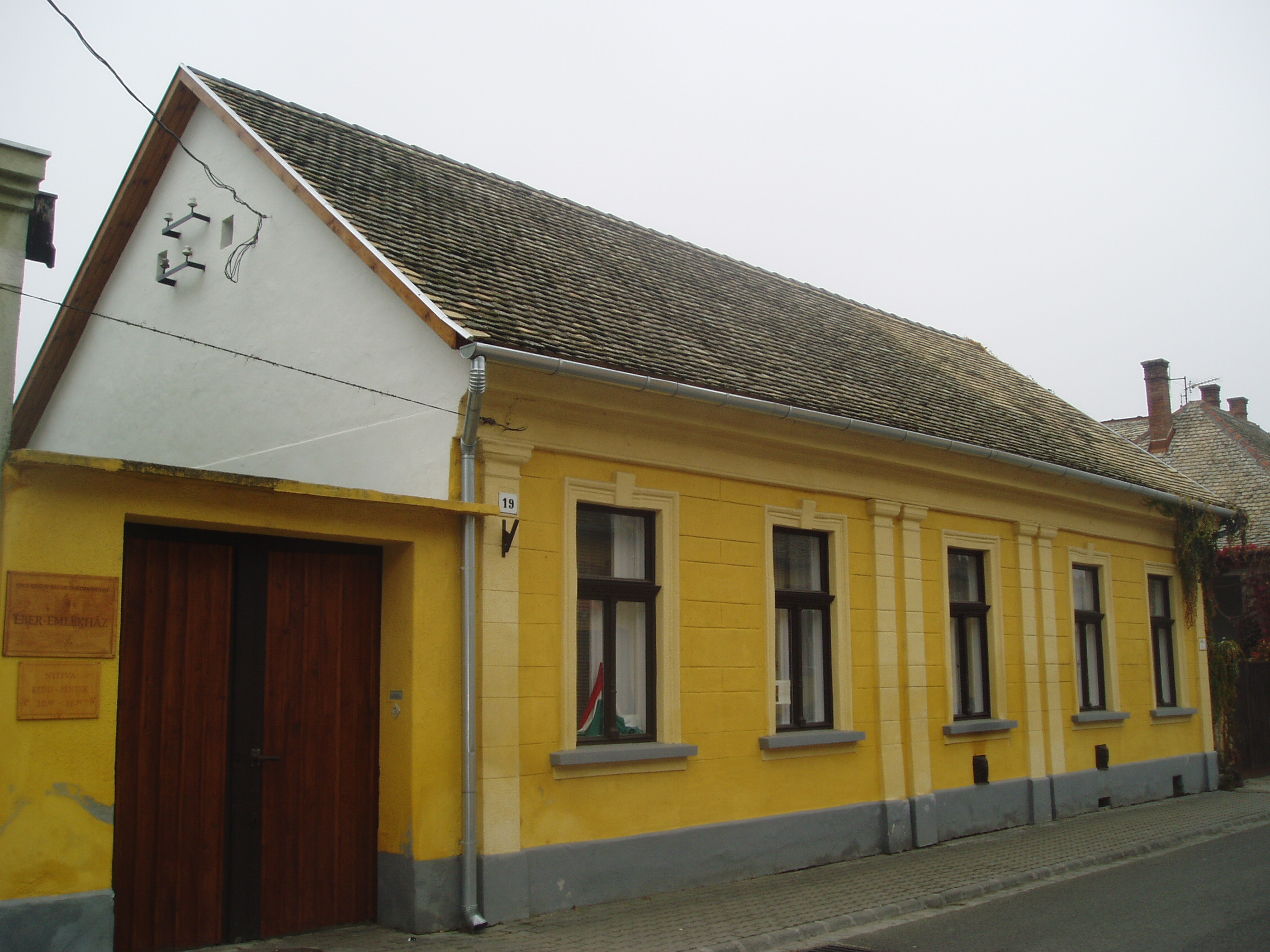 Nyilvános 1091 | 1557 | Baja, Jókai utca 19. Éber Emlékház | Baja keskeny, csendesen kanyargó utcájában áll id. Éber Sándor festőművész egykori otthona, a mai Éber Emlékház. Id. Éber Sándor (1878–1947) Székely Bertalan növendéke volt a Mintarajziskolában. A Tanítóképző Intézet tanáraként érkezett Bajára 1902-ben, ahol két évtizeden keresztül tanított. Művészként elsősorban a monumentális festészet vonzotta: élete során 22 templom, illetve iskola falát díszítette kissé szecessziós, néhol magyaros elemekkel díszített seccóival, freskóival. Harmonikus családi életet élt Baján megismert feleségével, s hét gyermeke született. Közülük leánya, Éber Anna (1905) és fia, Éber Sándor (1909–1985) lett neves képzőművész. Bajai lakásuk valóságos múzeum volt, benne saját képekkel és a környéken gyűjtött népművészeti tárgyakkal. A hangulatos házat festők, írók, esztéták is látogatták, s a műterem a helyi művészeti élet centruma és tanúja lett. Ma nyilvános múzeumként látogatható, miután ifj. Éber Sándor több évtizeden át hűségesen gondozta és bővítette a családi hagyatékot. A fénykép 2007 októberében készült. Felh. irod.: Látnivalók Bács-Kiskun megyében. Miskolc, Well-PRess, 2002 Kovács Zita: Az Éber-emlékház. Baja, Türr István Múzeum, 1999 |
