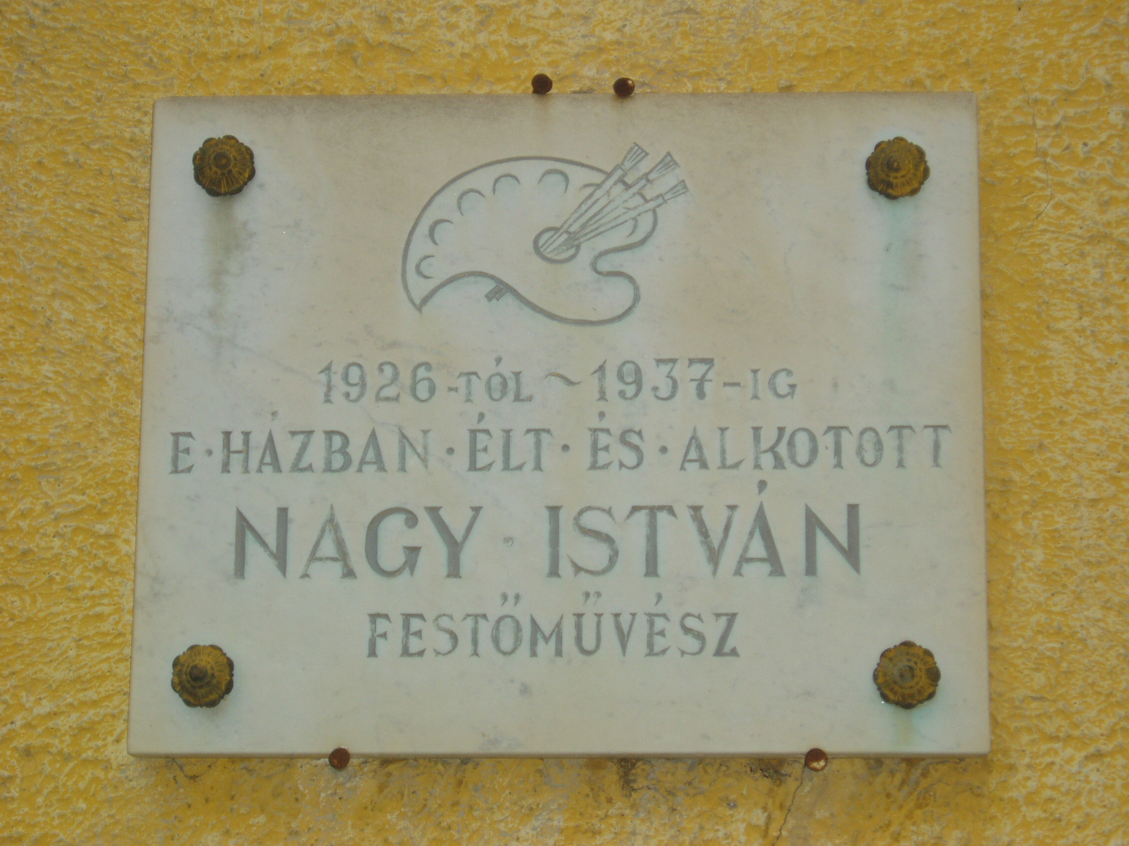 Nyilvános 1123 | 1605 | Baja, Nagy István utca 8. | Mint a homlokzatán elhelyezett emléktáblán is olvasható, ebben a kis házban töltötte életének utolsó évtizedét Nagy István (1873-1937) festőművész, akit már a kortársak is „a székelyek Rembrandtjá”-nak, „a magyar Van Gogh”-nak neveztek. A Csík megyéből származó művész egy alföldi kistelepülésen tanítóként működött, amikor egy iskolai kiállítás alkalmával felfedezték tehetségét. Így került a Mintarajztanodába, Székely Bertalan mellé, majd 1899-ben Münchenbe, ahol több akadémiai díjat nyert. Ösztöndíjjal jutott ki 1900-ban a párizsi Julian Akadémiára és 1902-ben Olaszországba. Visszatérve szülőföldjén, az erdélyi Csík megyében telepedett le és kezdett dolgozni a Gyilkos-tó környékén. Részt vett az első világháborúban, s noha hivatalosan nem volt hadifestő, a fronton számos rajzot készített, főként katonaportrékat. A háború után rövid ideig Erdélyben élt, majd Budapestre költözött, de megfordult Szentes környékén, Koszta József mellett is. Nagyszabású gyűjteményes kiállítása 1923-ban általános elismerést vált ki. Többek között Kosztolányi Dezső és Lyka Károly írtak alkotásairól lelkesedéssel, Surányi Miklós pedig regényt írt róla. A húszas évek második felében ismét Erdélyben dolgozott és itt is állított ki, bejárta Magyarországot, volt Jugoszláviában, míg betegsége végleges letelepedésre kényszerítette. Feleségével és fiával ekkor telepedett le Baján. Itt hunyt el 1937-ben, sírja abban a temetőben (lásd: Baja, Kálvária temető) van, amelyre naponta rálátott ablakából. Több mint 4000 művét tartják számon. Legtöbb műve a róla elnevezett bajai képtárban (lásd: Baja, Arany J. u. 1.) található. A fénykép 2007 októberében készült. Felh. irod.: Solymár István: Nagy István. Bp. Képzőművészeti Alap, 1977 Pap Gábor: Nagy István. Bp. Corvina, 1965 www.baja.hu |