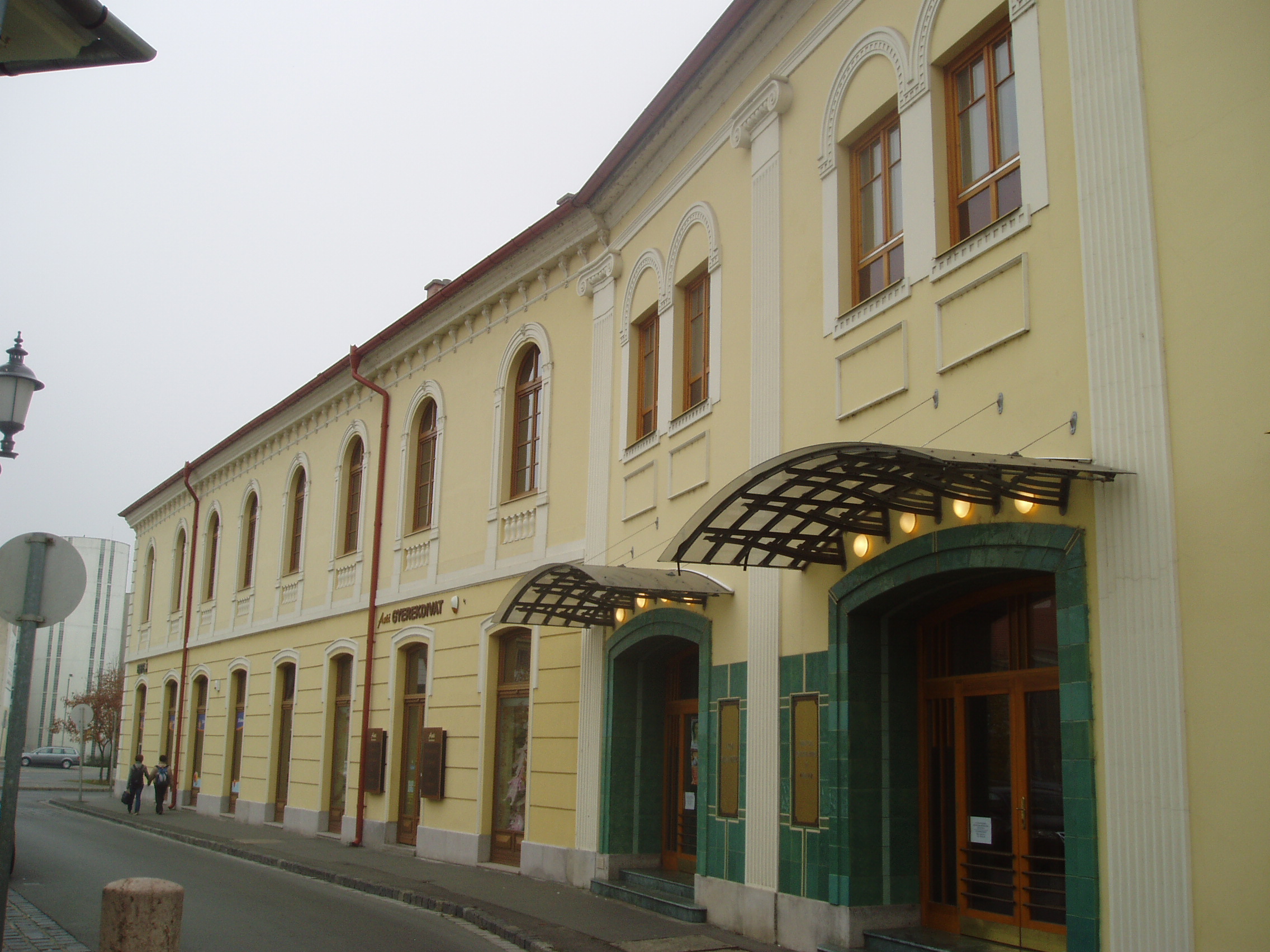 Nyilvános 1101 | 1650 | Baja, Oroszlán utca 3. | A József Attila Művelődési Központ színházának helyén hajdan az Arany Oroszlánhoz címzett vendégfogadó állt. Az 1770-es évektõl, amikor Baja gyakran volt Bács-Bodrog vármegye megyegyűléseinek helyszíne, itt gyűltek össze a képviselők. Itt adtak találkozót egymásnak a vidék gazdag kereskedői, itt úsztak el egész vagyonok a napokig tartó kártyacsatákon. Ez a fogadó volt a vidéki magyar nyelvű színjátszás egyik bölcsője is. Amikor 1827-ben Kilényi György játszott itt társulatával, a színigazgató az akkoriban Baján élő (lásd: Baja, Madách utca eleje) Rózsavölgyi Márkot és a Szabadkán működő Arnold Györgyöt kérte fel, hogy legyen segítségükre zenés darabok bemutatásában. A Kemény Simon című darab Arnold, az Illyés sapkája című pedig Rózsavölgyi zenéjével került bemutatásra. Az Arany Oroszlán helyére épült színházterem száz évvel a Kilényi–féle társulat szereplése után ismét a bajai zenei élet jelentős eseményének helyszíne lett: itt tartotta nyitóhangversenyét a Bajai Liszt Ferenc Kör 1926. november 15-én. A színházterem mindmáig — jelenleg a József Attila Művelődési Központ kezelésében — számtalan színházi, zenei, táncművészeti programnak ad helyet. A fénykép 2007 októberében készült. Felh. irod.: Bánáti Tibor: Bajai arcképcsarnok. Baja, Türr Múzeum, 1996 |