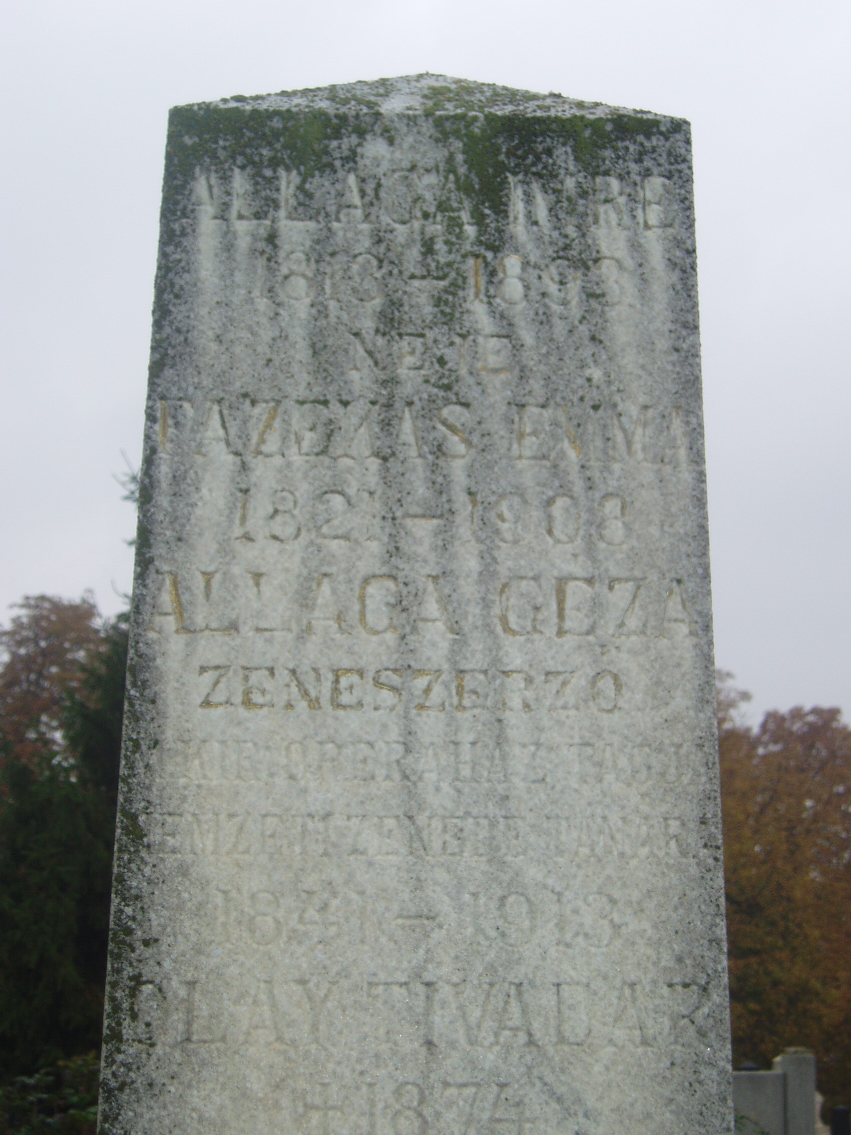 Nyilvános 1254 | 2486 | Baja, Rókus utca: Rókus temető - Allaga Géza sírja | A temetőkápolna közelében van Allaga Géza zeneszerző, karmester, cimbalomművész sírja. Az 1841-ben Óbecsén született zenész kisgyermek korában költözött szüleivel Bajára. Itt járt gimnáziumba, s kezdett zenével foglalkozni. A bécsi zeneakadémián végzett tanulmányai után színházaknál dolgozott, népszínművekhez írt dalokat. 1870-től a bajai tanítóképzőben tanított, de hamarosan a fővárosba költözött, s a Nemzeti Színház, majd az Operaház zenekarának első gordonkásaként működött. 1880-tól kezdett el a cimbalommal foglalkozni olyan eredményesen, hogy felkeltette Liszt Ferenc figyelmét is, s a Nemzeti Zenedében cimbalom tanszéket létesítettek számára. Idős korában visszatért Bajára, egyik fivére házában élt. Családi problémák és gyógyíthatatlan betegsége miatt 1913 augusztusában öngyilkos lett. A fénykép 2007 októberében készült. Felh. irod.: Herencsár Viktória: Cimbalmos ősök nyomában I. Allaga Géza. Bp. szerzői kiadás, 2001 Gál Zoltán : A cimbalom atyjának nevezték. = w.bacskaisport.hu |