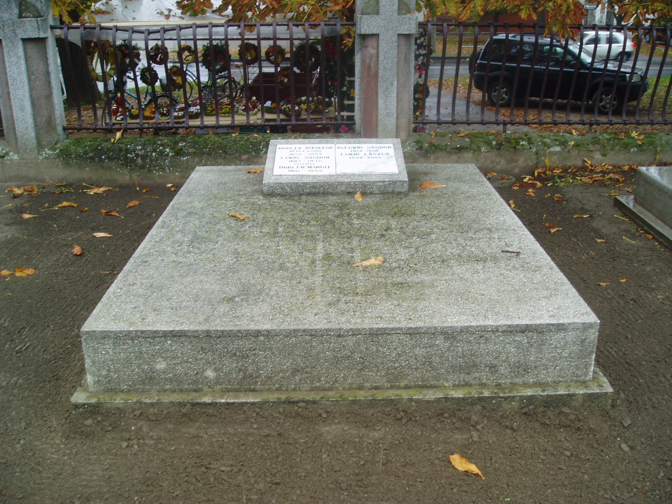 Nyilvános 1150 | 2154 | Baja, Rókus utca: Rókus temető - Lukin László sírja | A Rókus temetőben nyugszik a bajai születésű legendás pedagógus, karmester, egyházzenész Lukin László. 2004. augusztus 18-án, életének 79. évében hunyt el. 1950-től nyugdíjazásáig a fővárosi Fazekas Mihály Gimnáziumban tanított, s mellette személyesen és a televízión keresztül több nemzedéket nevelt zenehallgatásra, zeneszeretetre. Baja díszpolgárának nevét szülővárosában ma általános iskola viseli. Emléktáblát a helyi Liszt Ferenc Zeneiskolában avattak tiszteletére. A fénykép 2007 októberében készült. |