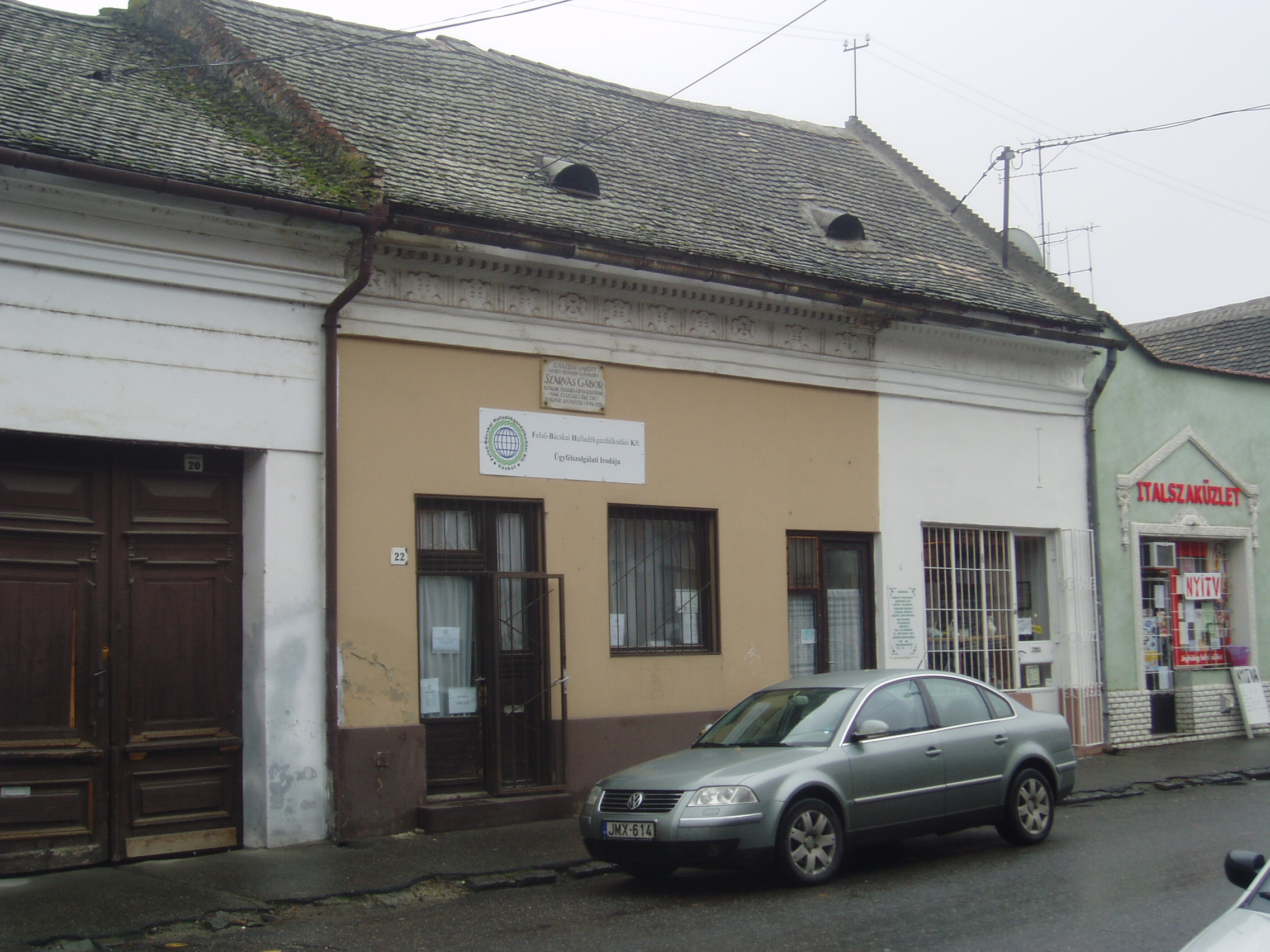 Nyilvános 1128 | 1730 | Baja, Szabadság út 22. | A homlokzaton elhelyezett emléktábla tanúsága szerint ebben a kis házban lakott Szarvas Gábor nyelvész (1832-1895) 1857-1858-ban, majd 1860-1861-ben, amikor a bajai gimnázium (lásd: Baja, Szent Imre tér 5.) tanára volt. A magyar nyelvművelés megteremtője Egerben, Baján, Pozsonyban, majd Pesten működött tanárként. Országos hírnévre nyelvészeti munkásságával tett szert. A Magyar Tudományos Akadémia megbízásából ő indította be 1872-ben a Magyar Nyelvőr című, máig létező folyóiratot. Nyelvészként állást foglalt az erőszakos nyelvújítás és az idegenszerű fordulatok ellen. Kutatásai során tisztázta a nyelvújítás határait. Eredményes munkássága elismeréséül a Magyar Tudományos Akadémia levelező, majd rendes tagjává választották. A fénykép 2007 októberében készült. Felh. irod.: Bálint László: A bajai III. Béla Gimnázium. Bp. 1989, Tankönyvkiadó. /Iskolák a múltból./ Magyar életrajzi lexikon |