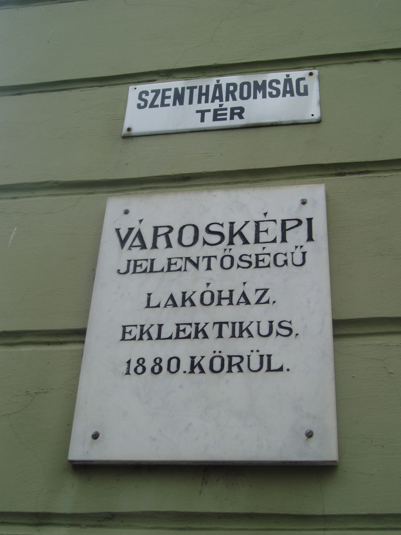 Nyilvános 1142 | 1772 | Baja, Szentháromság tér 3. | A bajai Szentháromság teret magyarországi Szent Márk térként emlegetik. Értékét nemcsak épületei, hanem kövezete is adja. A teret, amely három oldalról beépített, s nyitott negyedik oldala a Sugovicára néz, lóhere formában keresztezik az utak. A teret városképi jelentőségű épületek veszik körül, ezek egyike a 3. számú, 1880 körül eklektikus stílusban épült városi palota. Itt működött egykor a Reich Farkas és Fiai cég áruháza. A fénykép 2007 októberében készült. Felh. irod.: Látnivalók Bács-Kiskun megyében. Miskolc, Well-PRess, 2002 Magyarország műemlékjegyzéke: Bács-Kiskun megye. Bp. Kulturális Örökségvédelmi Hivatal, 2006 |