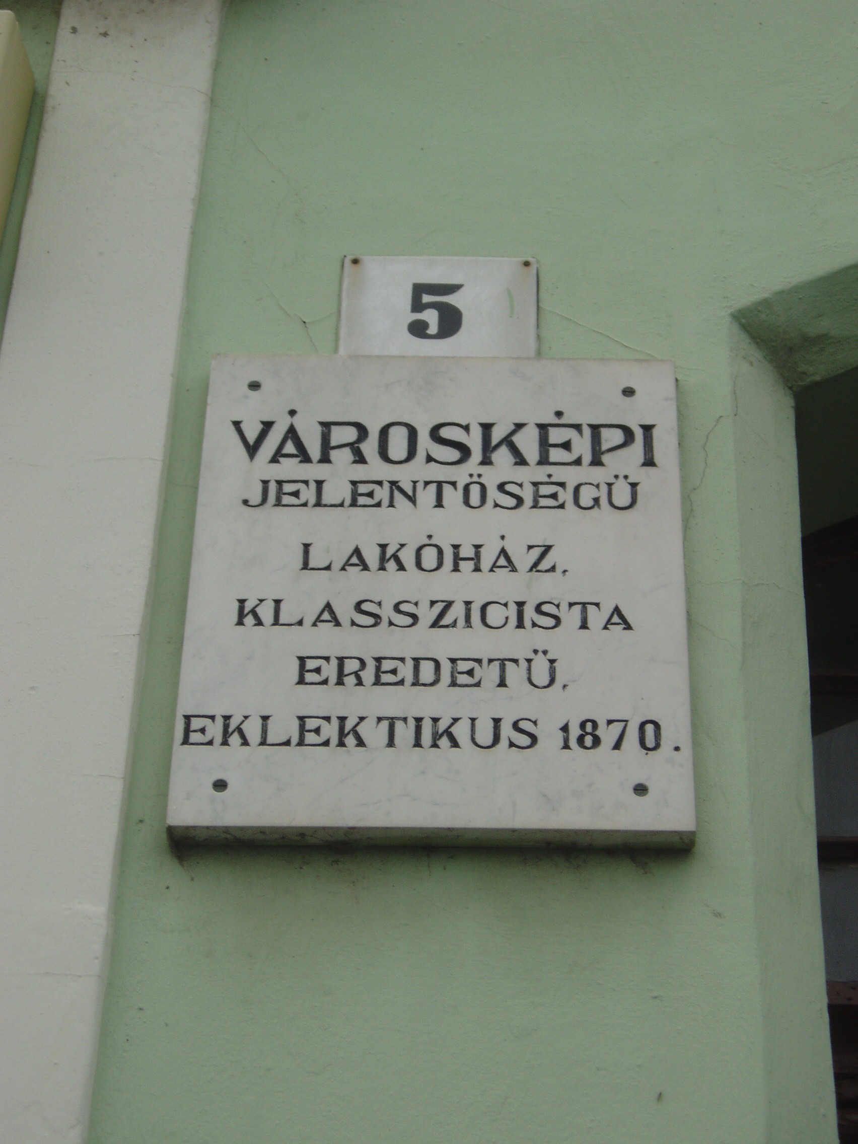 Nyilvános 1098 | 1543 | Baja, Szentháromság tér 5. | A bajai Szentháromság teret magyarországi Szent Márk térként emlegetik. Értékét nemcsak épületei, hanem kövezete is adja. A teret, amely három oldalról beépített, s nyitott negyedik oldala a Sugovicára néz, lóhere formában keresztezik az utak. A teret városképi jelentőségű épületek veszik körül. A 5. házszámú, klasszicista eredetű városi palotát 1870 körül építették újjá eklektikus stílusban. A fénykép 2007 októberében készült. Felh. irod.: Látnivalók Bács-Kiskun megyében. Miskolc, Well-PRess, 2002 |
