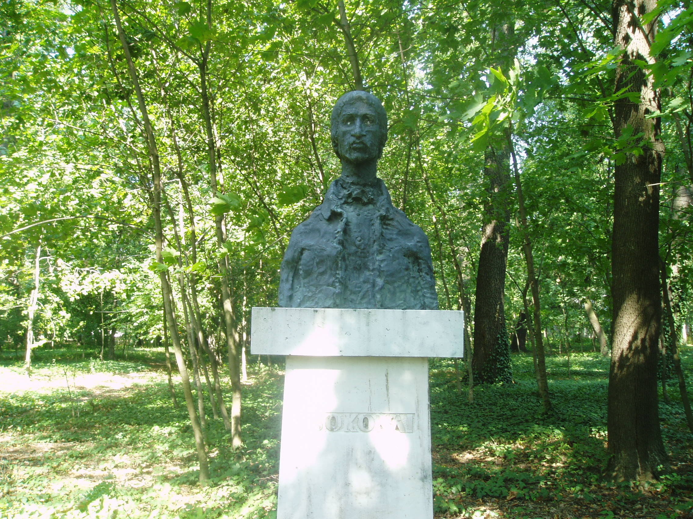 Nyilvános 1468 | 3483 | Sárospatak, Iskolakert: Csokonai Vitéz Mihály szobra | A Református Kollégium (lásd: Sárospatak, Rákóczi u. 1.) bejáratával szemben találjuk az Iskolakertnek nevezett parkot. Az 1980-as években természetvédelmi területté nyilvánított Iskolakert sajátos nemzeti érték, mely egyedülálló az országban. Sétányai mentén Patakhoz kötődő jeles személyiségek szobrai állnak. A képen Csokonai Vitéz Mihály bronz mellszobra látható. Vilt Tibor alkotását 1972-ben avatták fel. Csokonai 1795. decemberétől 1796. júliusáig tanult jogot Kövy Sándor professzortól Patakon. A fénykép 2007 augusztusában készült. Felh. irod.: Látnivalók Borsod-Abaúj-Zemplén megyében. Miskolc, Well-PRess, 1995 Martinák János: Csokonai és Sárospatak. = Zempléni Múzsa 2005. 2. www.sarospatak.hu/nevezetessegek |