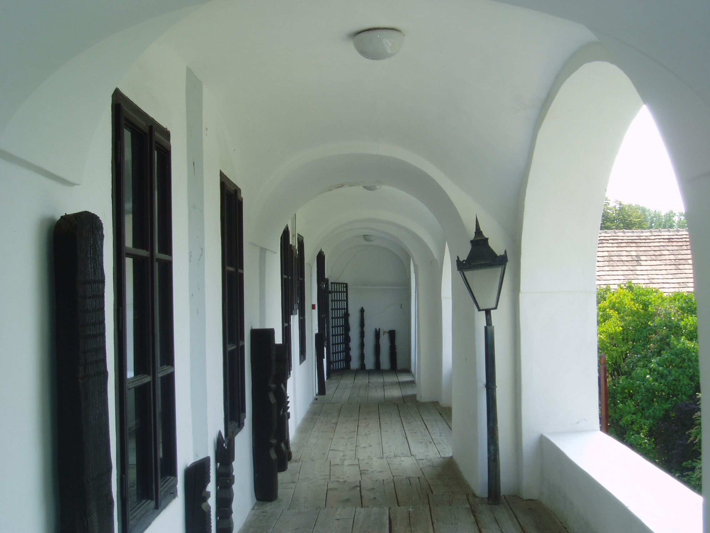 Nyilvános 1093 | 1619 | Sárospatak, Rákóczi utca 1. Református Kollégium | A Kollégium főépületének szárnyai által határolt tágas udvarban áll a régi iskolaépületek utolsó maradványa, az ún. Berna-sor. 1771/72-ben a fizika oktatása számára és a fizikaprofesszor lakásául épült. Az egyemeletes, hosszú szárny déli oldalát később kétszintes, árkádos tornáccal bővítették, feljáróval a nyugati oldalon. Az épület a korabeli provinciális magyar építészet szép példája. Az emelet boltozott termeiben a kollégium történetét bemutató kiállítás látható. A fénykép 2007 augusztusában készült. Felh. irod.: Détsy Mihály: Sárospatak. Bp. Corvina, 1974 |
