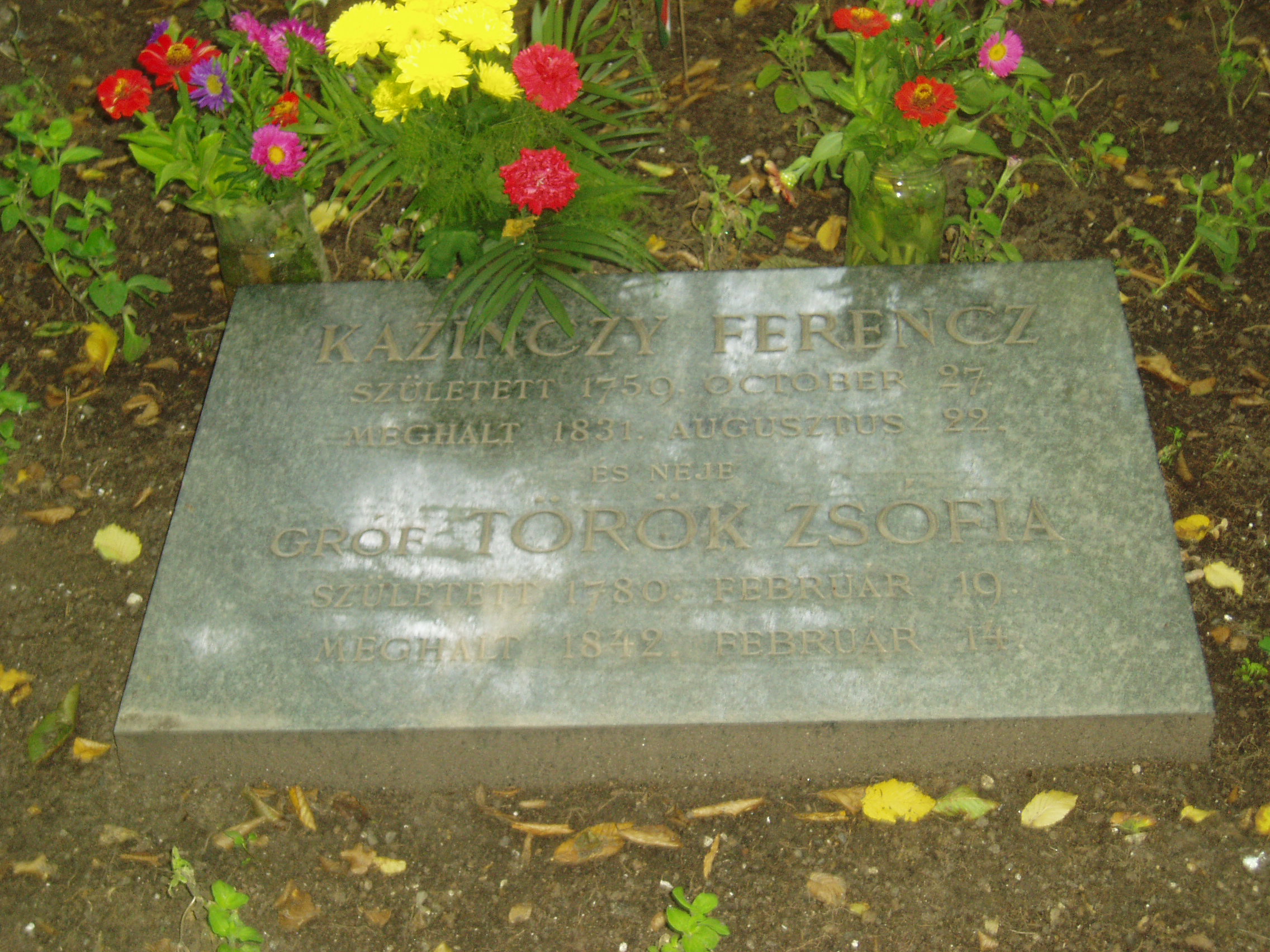 Nyilvános 1101 | 1623 | Széphalom: A Kazinczy család sírkertje - Török Sophie sírja | A Kazinczy Emlékcsarnok parkja - Kazinczy Ferenc egykori kúriájának kertje - ma természetvédelmi terület. A mauzóleumból fasor vezet a Kazinczy család sírkertjébe. A kis temető helyét 1806-ban, első gyermeke, az egyéves korában elhunyt Iphigenia halálakor Kazinczy maga jelölte ki. Már akkor megírta barátainak, hogy felesége és ő is oda fognak temetkezni. Az 1831 augusztusában elhunyt Kazinczyt felesége, Török Sophie valamivel több, mint egy évtizeddel élte túl: ő 1842. február 14-én halt meg. Török Sophie, azaz gróf Török Zsófia és Kazinczy 1804 novemberében kötöttek házasságot. Nyolc gyermekük született, közülük négy nyugszik szülei sírja körül. Legkisebbik fiuk, Lajos, Aradon szenvedett vértanúhalált a honvédsereg ezredeseként. A fénykép 2007 augusztusában készült. Felh. irod.: Látnivalók Borsod-Abaúj-Zemplén megyében. Miskolc, Well-PRess, 2004 www.vendegvaro.hu Busa Margit: Adalékok a Kazinczy család történetéhez. = Széphalom. A Kazinczy Ferenc Társaság Évkönyve 12. kötet, 2002 |