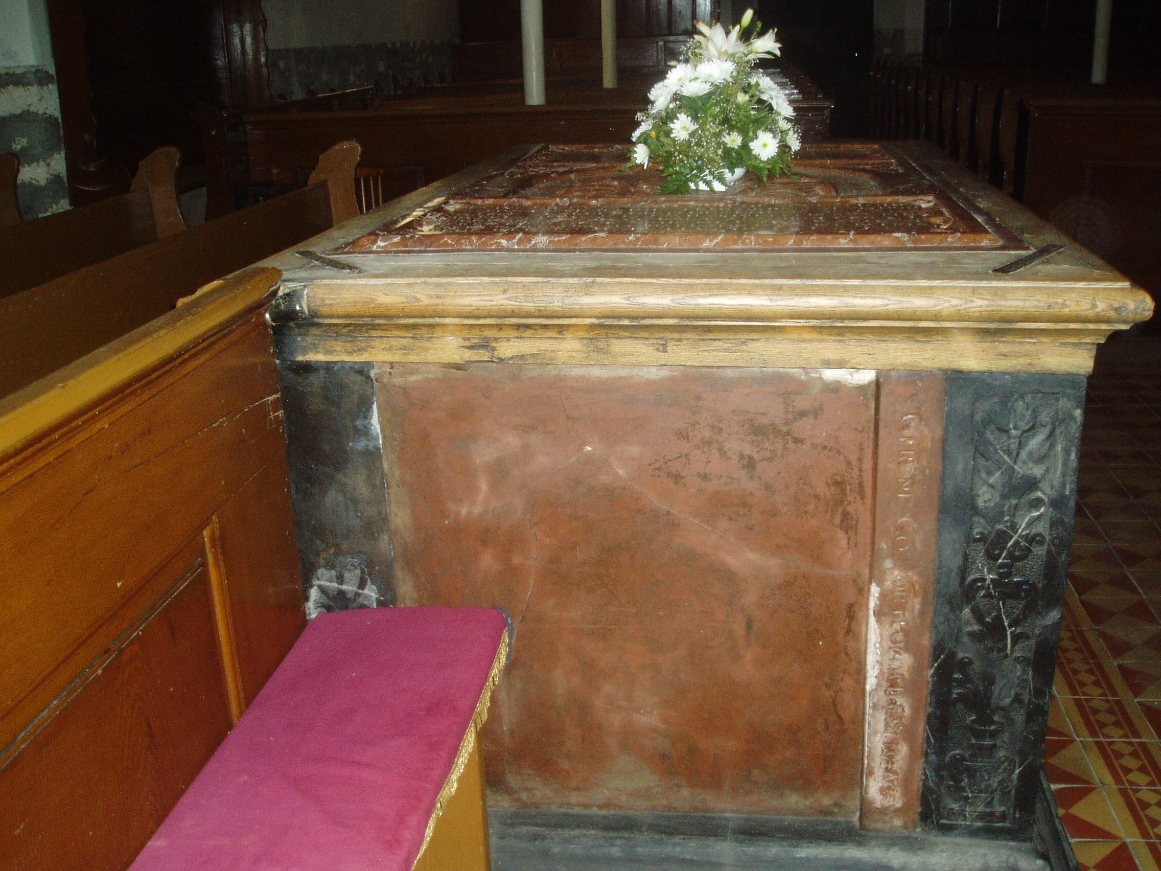 Nyilvános 1085 | 1760 | Szerencs, Kossuth tér 4. Református templom - Rákóczi Zsigmond tumbája | Szerencs legrégibb temploma a XIII. században épült eredetileg román stílusban. Az épületet 1480-ban átalakították, ekkor készült a középen álló gótikus torony. Az épületet gótikus támpillérek fogják körül. A templomot 1595-ben adományozta Rákóczi Zsigmond református hittársainak, az ő támogatásával jelentős átalakításokat is végeztek rajta. A templom nemcsak építészetileg nevezetes, hanem jelentős történelmi emlékhely is. 1605-ben az e falak között tartott országgyűlésen választották Bocskai Istvánt Magyarország fejedelmévé. A templom hajójában található Rákóczi Zsigmond (1544-1608) címerrel ékesített vörös márány szarkofágja (tumbája), amelyet 1618-ban a fejedelem három fia, György (1630-tól erdélyi fejedelem), Zsigmond és Pál készíttetett. A síremlék tetején levő latin szöveg fordítása: "Tekintetes és nagyságos felsővadászi Rákóczi Zsigmond, Borsod vármegye főispánja, a magyar király néhai lefőbb tanácsosa, először Szendrő, azután pedig Eger kapitánya és Erdély fejedelme, a magyarországi részek ura és a székelyek ispánja számára állíttatott jeles címer, akinek erénye gyakrabban híresedett el Magyarországon legnagyobb örvendezések közepette. Aki meghalt az ő kegyeletes szülőhelyén, Felsővadászon az 1608. évi december hó 5-én, midőn innen-onnan 64 évig élt. Három gyászoló fia: Rákóczi György , Zsigmond és Pál az ő legkedvesebb édesatyjuknak, aki irántuk és a haza iránt jól érdemesült." A szarkofág nyugati oldalán a következő felirat olvasható: "Tebenned reméltem Uram, hogy nem leszek porrá mindörökké! " A déli oldalon Miskolczi Csulyak István prédikátor verse őrzi Rákóczi Zsigmond emlékét: "Itt nyugszik végső lehelete után a békében és háborúban győzedelmes Rákóczi zsigmond, Magyarország oszlopa, akinek Eger csodálta szerencséjét, a császár fővezérének kies lángelméjét is, Erdély oltalmazóját, a kegyetlen török pedig ostorát, mi honfiak az ő kegyes atyai indulatát. Azért Magyarország, Eger, császár, honfiak, érdemihez illően fizessetek könnyeitekkel a haza atyjának." A síremlék alatt egy deszkaajtó felnyitása után lehet lejutni a kriptába. Ott található a fejedelem földi maradványait őrző urna, amelyet 1849-ben kapott adományul a város a X. zászlóalj tisztikarától. Bár 1644-ben, amikor Esterházy Miklós nádorispán csapatai megrohanták és kifosztották Szerencset, meggyalázták a fejedelem síremlékét is, Rákóczi Zsigmond koponyája megmaradt, s ma a kriptában egy kőurnában őrzik. Bizonyítéknak a koponyán található gyógyult fejsérüléseket tekintik, amelyeket az itt eltemetett személyek közül egyedül a fejedelem kaphatott. 1855. október 19-én járt a templomban, zempléni kirándulásuk alatt Arany János és Tompa Mihály. Arany a következőket írta levélben egy barátjának: "Szerencsen egy Rákóczi korabeli templomban láttuk Rákóczi Zsigmond fejedelem czímeres és feliratos márványravatalát.” A fénykép 2007 augusztusában készült. Felh. irod.: Tájékoztató feliratok a templomban www.szerencs.hu http://tokaj-turizmus.wplanet.hu/irodalmiut |