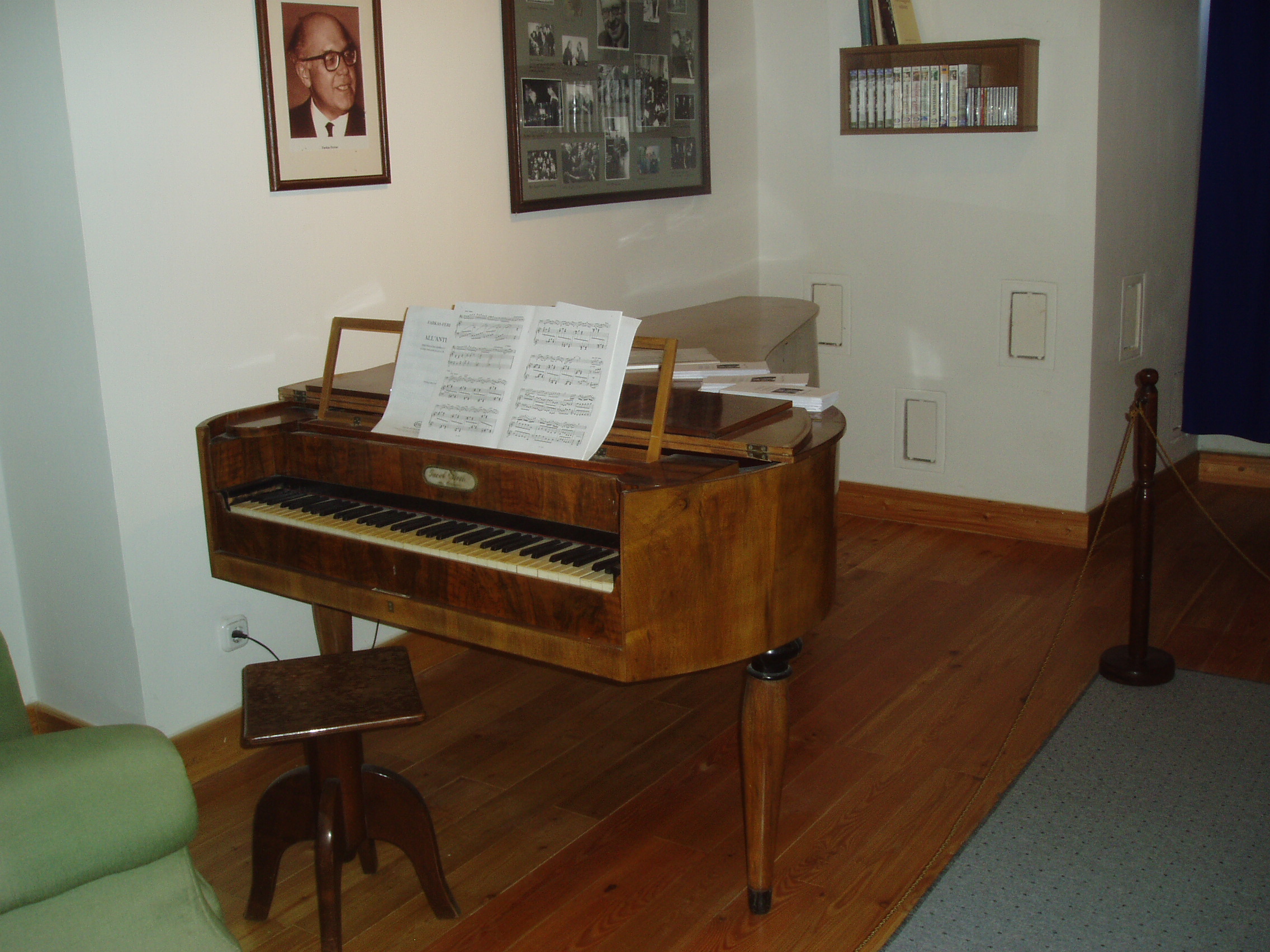 Nyilvános 1036 | 1580 | Sárospatak, Szent Erzsébet utca 19. Rákóczi-vár, Múzsák temploma: Farkas Ferenc emlékszoba | A Rákóczi-vár területén áll az egykori trinitárius kolostor, a mai Múzsák Temploma. I. Rákóczi György és Lorántffy Zsuzsanna nagy építkezései sorában emelték, valamikor az 1620-as években. 1690 körül II. Rákóczi Ferenc és húga, Julianna a Patakon letelepített trinitárius szerzeteseknek ajándékozta, akik átalakították saját céljaikra. 1786-ban, a rend feloszlatása után ismét belső átépítések következtek és uradalmi tisztviselők otthona lett. Műemléki feltárást követően, amely folyamán kibontották a később emelt falakat, Makovecz Imre tervei alapján az épület az 1970-es évektől mint Borostyán Szálló és Étterem működött. A Rákóczi Ferenc Múzeum az 1990-es évek végén olyan kiállítóhely létrehozását tűzte ki itt célul, amely minden művészeti ágat befogad. Ennek jegyében nevezték el a Múzsák Templomának, s nyitották meg benne a nagykanizsai születésű Farkas Ferenc (1905–2000) zeneszerző emlékszobáját. Farkas Ferenc életrajzilag nem kötődött Patakhoz, mégis szinte második otthonának érezte a települést. A zeneszerzőt a régi magyar muzsika forrásaival való közvetlen megismerkedés szándéka vezette a Református Kollégium könyvtárába (lásd: Sárospatak, Rákóczi út 1.). 1947-es pataki tartózkodása idején zenésítette meg Weöres Sándor: A tündér (Bóbita) című versét, mely Gyümölcskosár című dalciklusának része, s a dal itt hangzott fel először. Többször tartózkodott 1949 és 1960 között a várban működött Alkotóotthonban is. Az emlékszoba számára fia, Farkas András, Svájcban élő karmester ajándékozott közel 200 darab tárgyat, ezekből állítottak ki egy bő válogatást. A fénykép 2007 augusztusában készült. Felh. irod.: Détsy Mihály: Sárospatak. Bp. Corvina, 1974 Látnivalók Borsod-Abaúj-Zemplén megyében. Miskolc, Well-PRess, 1995 www.sarospatak.hu/nevezetessegek www.hnm.hu/sarospatak/kiallitas/muzsakt.htm |