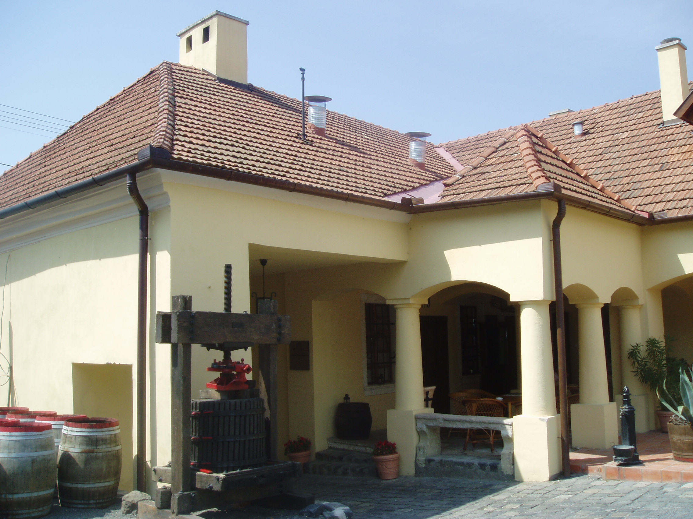 Nyilvános 1115 | 1761 | Tállya, Rákóczi utca 23. Szirmay-kúria | Tállya főutcája a felvidéki építészeti stílust őrzi, kőből épített boltíves kapui ma is szinte változatlan formájukban láthatók. Az egykori Szirmay-kúria épülete már négy évszázadra tekint vissza. 1771 körül a neves osztrák építész, Franz Anton Hillebrandt alakította át és bővítette ki a nemesi Szirmay família birtokközpontját. Szárnyas tölgyfa kapuján a hajdani címert oroszlánfejes kopogtatók szimbolizálják. A patinás épületben 2006 óta működik az Oroszlános Borvendéglő. A kúria jelenlegi újjáépített valóságában is történelmi korokat idéz: polgári kultúrájával, hegyaljai stílusával a község talán legpatinásabb képét adja. A bejárati nagykaput díszítő oroszlánfejes kopogtatók, a Hillebrandt stílusjegyeit viselő árkádsoros belső udvarrész, valamint a boltozatos tornác máig az épület ékességei. A fénykép 2007 augusztusában készült. Felh. irod.: www.apsus.eu/index.php?page=oroszlanos |