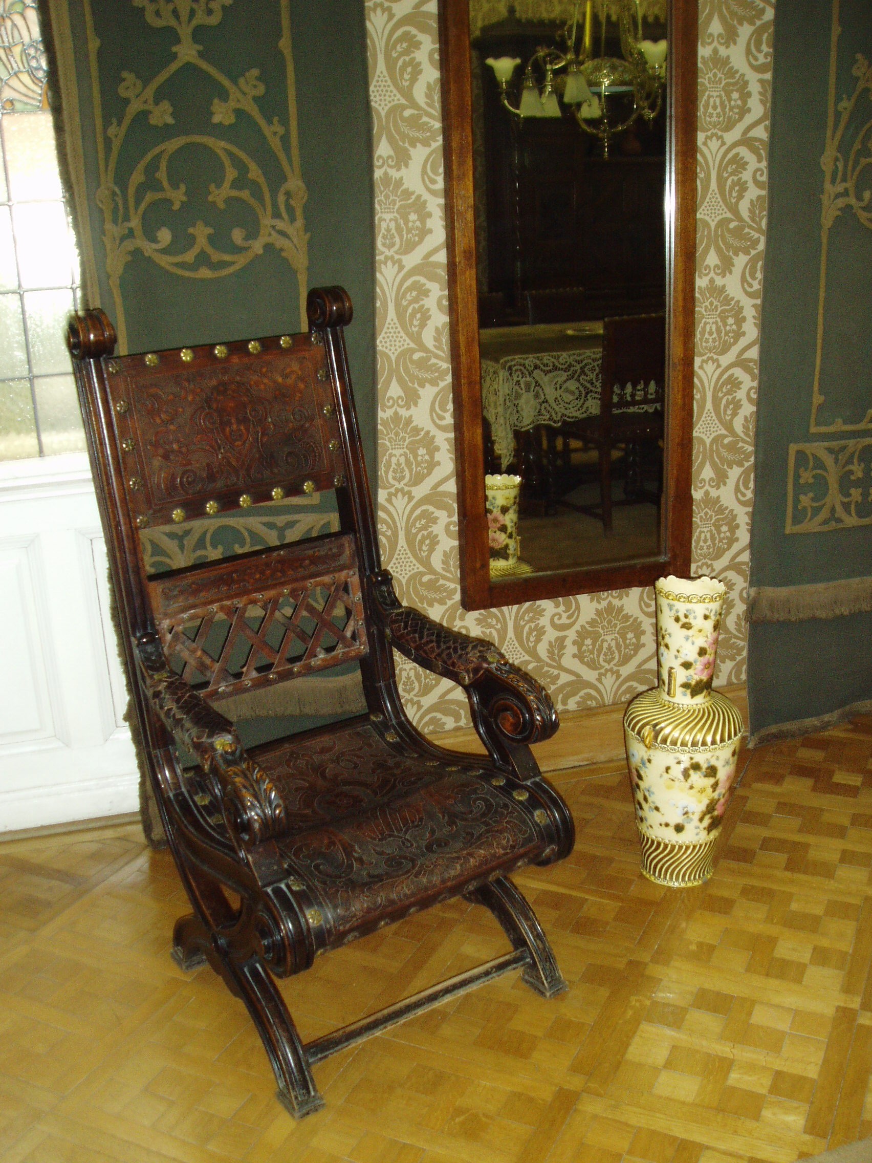 Nyilvános 1134 | 1617 | Budapest VI. Nefelejcs utca 26. Róth Miska Emlékház | Ebben a házban élt és dolgozott Róth Miksa (1865-1944), a magyar üvegfestő művészet legjelesebb alkotója. Egykori lakása, amelynek berendezése szinte teljes mértékben fennmaradt, 1999 óta a művész emlékmúzeuma. Magát az épületet Petz Miksa, a budapesti Nagyvásárcsarnok építője tervezte. Róth Miksa nevéhez fűződik többek között a budapesti Parlament, a Zeneakadémia, az egykori Osztrák-Magyar (ma Magyar Nemzeti) Bank vagy a Gresham palota ólomüveg ablakainak készítése. Az Emlékház állandó kiállítása keresztmetszetet ad Róth Miksa művészetének egyes szakaszaiból. Jelentős alkotásokat, gyönyörű ólomüveg képeket láthatunk a historizmus, a szecesszió és az art deco korából. Róth szívesen dolgozott együtt Rippl-Rónai Józseffel, Nagy Sándorral, Maróti Gézával és kora más neves művészeivel, ezért több olyan műve is látható, melyeket művésztársaival közösen készített. S a lakás teljes épségben fennmaradt XX. század eleji berendezése, egy sikeres művész életének mikrokörnyezete is igazi különlegességet kínál a látogatónak, aki képet alkothat a magyar főváros nagy korszakának polgári világáról is. A fénykép 2005 októberében készült. Felh. irod.: www.rothmuzeum.hu |