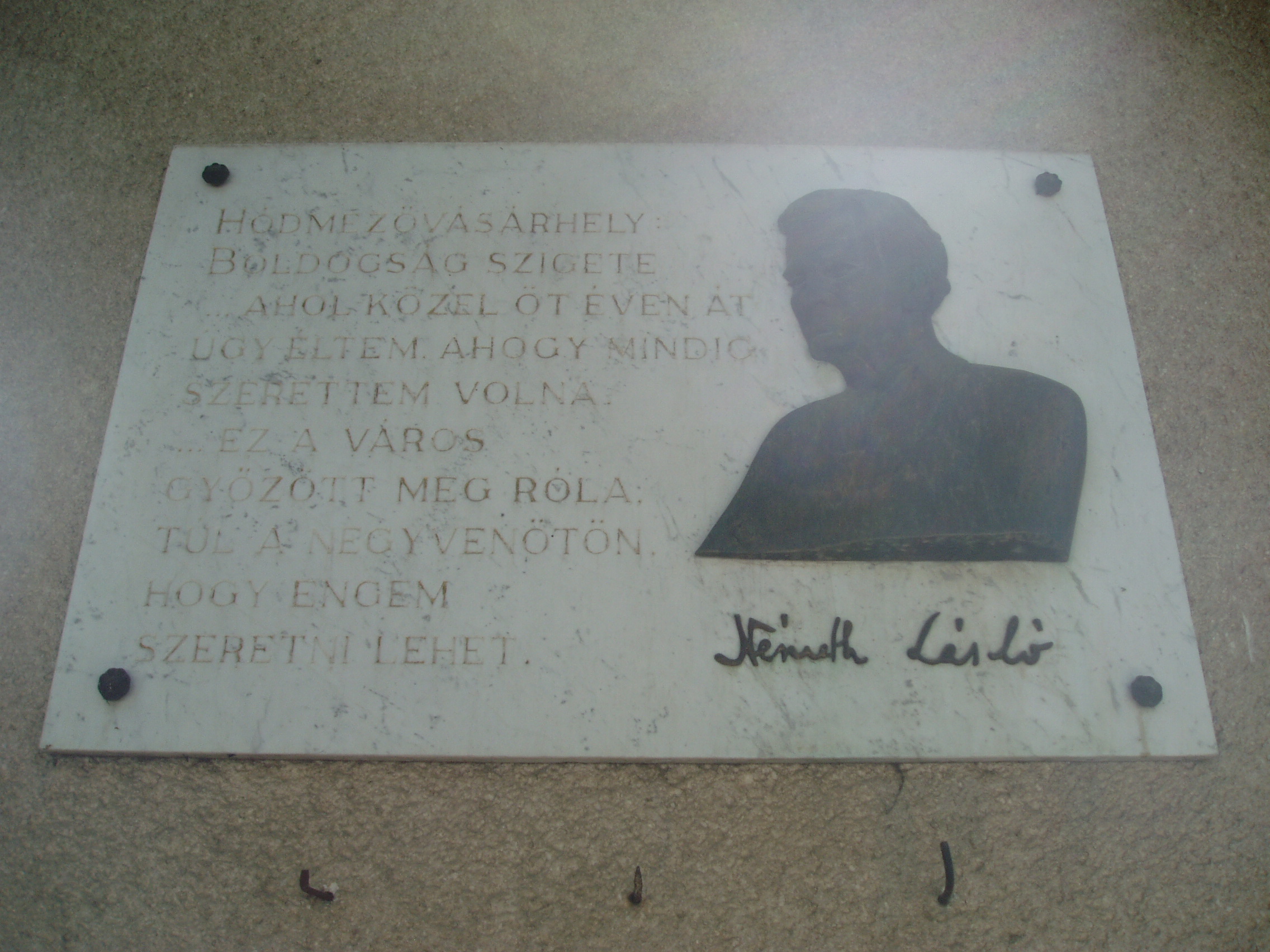 Nyilvános 1498 | 3172 | Rövid leírás | Teljes leírás (959 B) | Hódmezővásárhely, Bercsényi utca 27. Németh László 1945 szeptemberében Hódmezővásárhelyre költözött, s óraadó tanárként dolgozott a gimnáziumban. 1946 tavaszáig az Andrássy utca 9. számú épület (lásd ott) emeletén lakott, onnét költözött a Kristó-házba, a Bercsényi utca 27. alá. Belépve az udvarra, a ház végében áll a kis kerti lak, amelynek verandáján az első vásárhelyi művek, a "Mathiász panzió" és "A tanügy rendezése" íródtak. Az utcai szobában az "Eklézsia megkövetés" (dráma Misztótfalusi Kis Miklósról), a "Széchenyi", az "Égető Eszter" és más jelentős alkotások születtek. Németh László egykori otthonát ma emléktábla jelöli, rajta az író vallomásos sorai a városról. A fénykép 2007 júliusában készült. Felh. irod.: Grezsa Ferenc: Németh László Vásárhelyen. = www.nlvk.hu/vik/nemethl.htm |