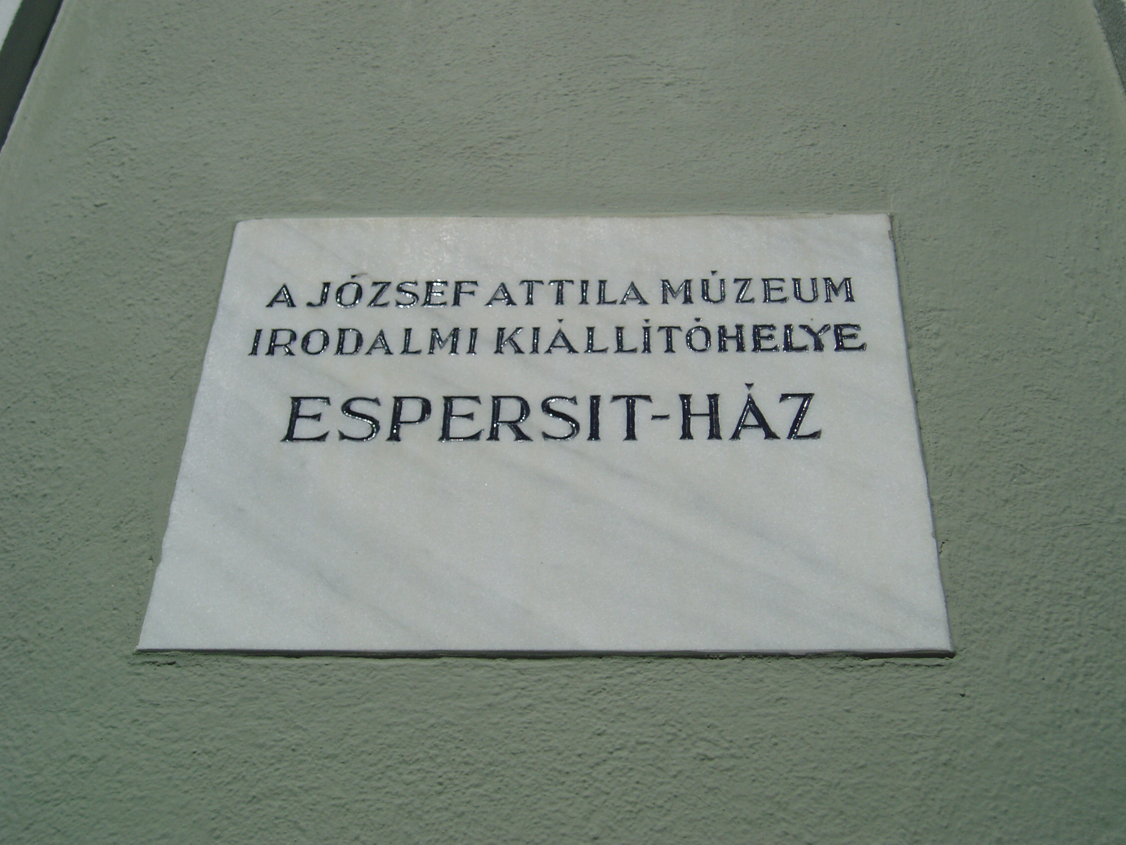 Nyilvános 1084 | 1455 | Makó, Kazinczy utca 6. Espersit-ház | Az épület, Dr. Espersit János (1879-1931) egykori háza 1979 óta Makó irodalmi emlékmúzeuma. A jónevű ügyvéd, függetlenségi, majd köztársaságpárti politikus, polgári radikális lapszerkesztő írók, költők, művészek jeles mecénása is volt. Otthonában makói tanár korában gyakori vendég volt Juhász Gyula, aki így írt: "A Músa áldja ezt a szép lakot Hol napjaim derűs örömbe folynak." A ház vendége, majd hónapokig lakója volt a fiatal József Attila. 1920 októberében, 15 éves korában érkezett Makóra, hogy tanulmányait a főgimnáziumban (lásd: Makó, Csanád vezér tér 6.) folytassa. Makói verseiből állt össze első kötete, a Szépség koldusa. A magyar irodalom harmadik jelese, aki e házban megfordult, a magát "tiszteletbeli makai"-nak nevező Móra Ferenc, akinek Georgikon című kötete ebben a házban született. A múzeum első szobája első a "Hősi bajnok" címet kapta. A látogatók megismerhetik azt a szellemi-kulturális légkört és baráti társaságot, amely József Attilát, Juhász Gyulát és Móra Ferencet, Rudnay Gyulát, Vén Emilt is befogadta. A második szoba, a "Meghitt kultúrbarlang" íróasztalán, foteljében alkotott Juhász Gyula, József Attila. A harmadik szoba a "Szent csöndben" címet kapta, itt ismerkedhetnek meg a látogatók Juhász Gyula makói éveivel, verseivel. A negyedik szoba József Attila makói gimnáziumban töltött diákéveit és makói múzsáit mutatja be "Új és paraszti füttyként indulok" címmel. (Sajnos, a múzeumbelsőben nem lehetett fényképezni, pedig végignézése egyik legnagyobb múzeumi élményem volt! - K.K.) A fénykép 2007 júliusában készült. Felh. irod.: Barangolások Csongrád megyében. Miskolc, Well-PRess, 1997 www.mfm.u-szeged.hu/mako05.html |