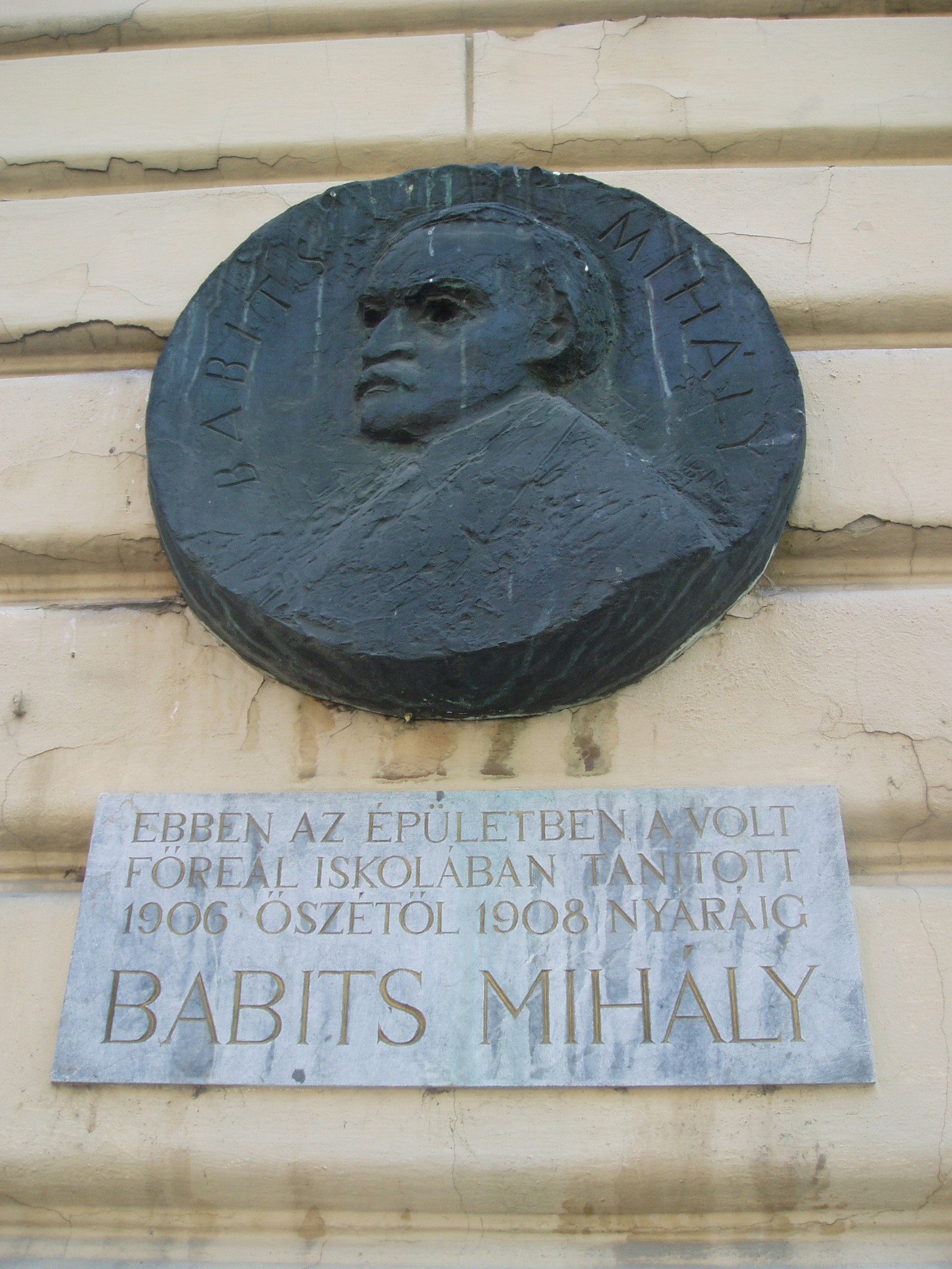 Nyilvános 1012 | 1455 | Szeged, Horváth Mihály utca 2. | A mai Vedres István Építőipari Szakközépiskola főreáliskolának épült 1891-ben Meixner Károly és Ney Béla tervei szerint. Itt tanult 1898 és 1892 között Balázs Béla, 1905 és 1910 között Rákosi Mátyás. 1906 és 1908 között itt tanított Babits Mihály. A nagy költő domborművű emléktábláját Borsos Miklós készítette 1973-ban. A fénykép 2007 júliusában készült. Felh. irod.: Péter László: Szeged. Bp. Panoráma, 1981 |