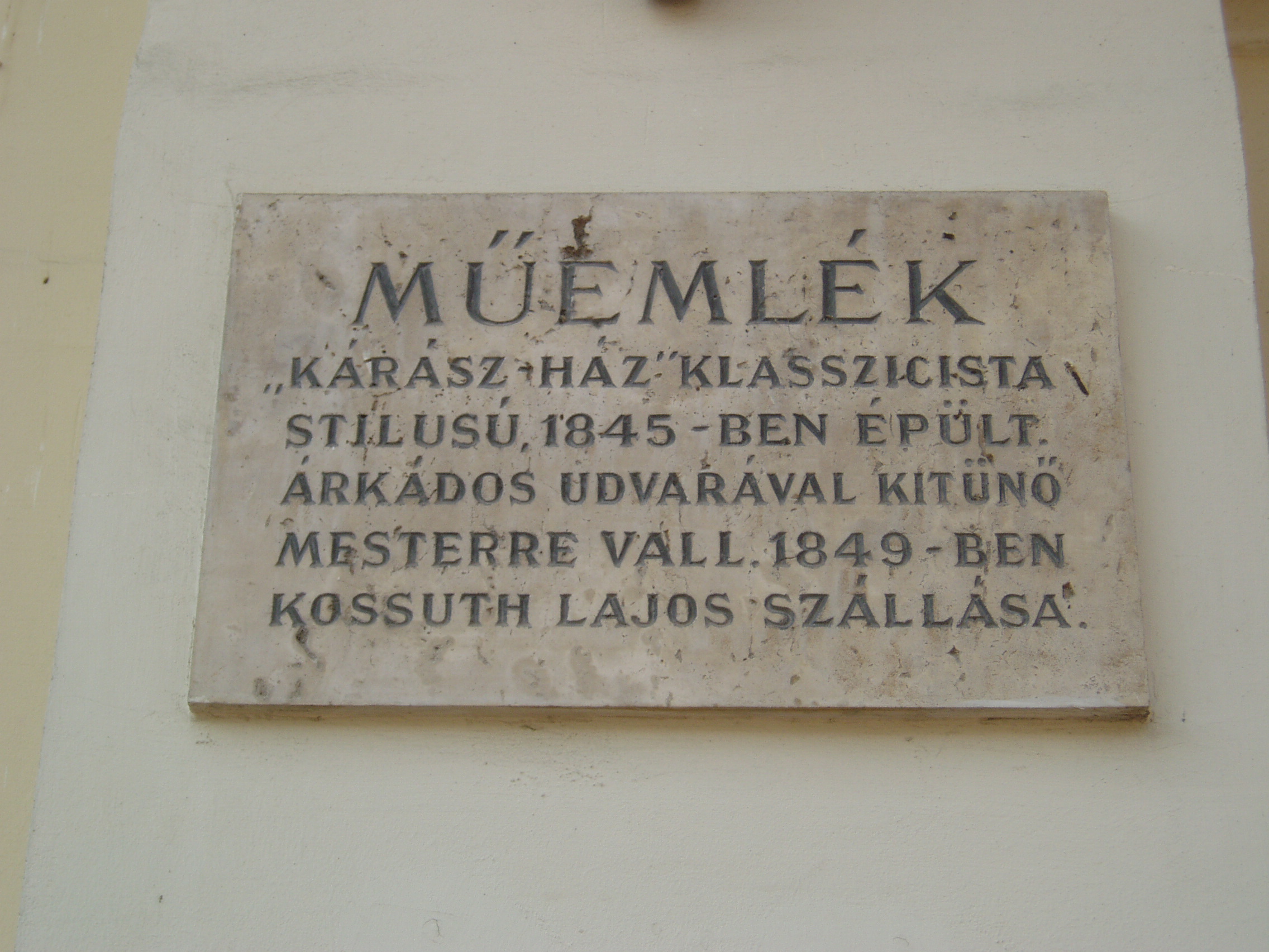 Nyilvános 1090 | 1482 | Szeged, Klauzál tér 5. Kárász-ház | A tér legszebb és legjelentősebb műemlék épülete a Kárász-ház (1845). A szegedi klasszicizmus legérettebb, egyszerű, de monumentális alkotása. Kiemelkedő szerepe van a tér kiegyensúlyozott hatásában. 1849-ben ebben a házban szállt meg Kossuth Lajos és ennek kovácsoltvas erkélyéről mondotta el július 12-én utolsó nyilvános hazai beszédét, majd 14-én itt írta alá a román - magyar megbékélési tervezetet is Nicolae Bălcescuval. A történelmi nevezetességű erkély 1918-ban is szerephez jutott. Innen jelentette be október 31-én a szegedi Nemzeti Tanács a város népének az őszirózsás forradalom győzelmét. Szólt ekkor a szegediekhez Móra Ferenc és Juhász Gyula is. Majd az események fordultával 1919. június 2-án Károlyi Gyula kormánya is itt hirdette ki megalakulását. A Kárász családból többen is beírták nevüket a város történetébe. Az alapító, Kárász Miklós (1715-1797) szegény felvidéki nemes ifjú volt, városi íródeáknak került Szegedre. 1739-ben lett Szeged főjegyzője, s egyúttal - szabályellenesen - tanácsnoka is, majd 11760-ban Csongrád megye alispánja. Vagyonát házasságával alapozta meg. A mostani ház helyén az 1760-as években építette fel kúriáját. Eléje Szentháromság-szobrot emelt, állítólag fogadalomból, mert egy kocája elvesztése miatt ártatlan kondását agyonütötte. Móricz Pál "A Kárász uraság kocája" című elbeszélésében dolgozta fel a helyi szájhagyományt. Fia, Kárász István (1745-1815) Csongrád megye alispánja, az 1790-91. évi országgyűlésen a nemesi ellenzék egyik elszánt vezére volt. Az ő fia, szintén Kárász István 1840-ben mint Csongrád megye követe az országgyűlésben Deák Ferenccel emelte fel szavát az ősiség ellen. Kárász Miklós egy másik unokája, Kárász Benő (1792-1874) építette a most itt álló Kárász-házat. Ő a megyének a reformkorban alispánja, 1848-ban főispánja, tagja a szegedi hadi választmánynak, amiért Világos után a pesti Újépület foglya volt. Kegyelem révén szabadult ugyan, de az önkényuralom alatt állandó rendőri felügyelet alatt állott. Az alkotmány visszaállításáért folytatott küzdelemben, Szeged gazdasági fejlődésében jelentős szerepet játszott, majd 1861-től 1868-ig ismét főispán lett. Lánya, Anna fiatalon meghalt, egyetlen fia, Kárász Géza (1837-1905) kezén pedig a vagyon elúszott. Amikor 1857-es szegedi látogatásakor ebben a házban szállt meg Ferenc József, az anekdota szerint a húszéves, tüzes kuruc Kárász Géza éppen akkor érkezett haza külföldről, s a kapu alatt a császári őrséget meglátva iszonyú lármát csapott, mire apja a hajdúkkal bezáratta a kocsiszínbe... A fénykép 2007 júliusában készült. Felh. irod.: Péter László: Szeged. Bp. Panoráma, 1981 |