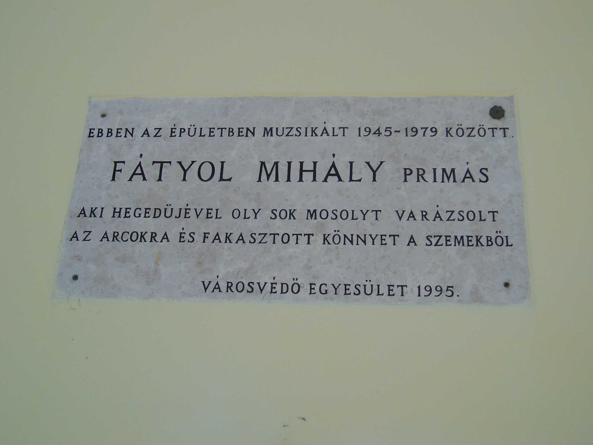 Nyilvános 1102 | 1527 | Makó, Széchenyi tér 10. Korona szálló | A Korona Szálló 1855-ben épült a korábbi püspöki vendégfogadó helyére. A jelenelegi impozáns, eklektikus épület több bővítés és felújítás eredményeként jött létre. Nagyvendéglőjét az 1870-es évek második felében Steingassner József, Tömörkény István (1866–1917) édesapja bérelte. Az épület Főtér felőli sarkán emléktábla örökíti meg, hogy gyermekkorában itt lakott Szeged nagy írója. A második világháború előtt itt — és más makói vendéglátó helyeken is — muzsikált bandájával Fátyol Jancsi, a kor egyik neves cigányprímása. Emléktábláját a Városvédő Egyesület állította. A fénykép 2007 júliusában készült. Felh. irod.: Barangolások Csongrád megyében. Miskolc, Well-PRess, 1997 www.mako.hu Makó története 1920-tól 1944-ig. Makó, 2004. /Makó város monográfiája 6./ |