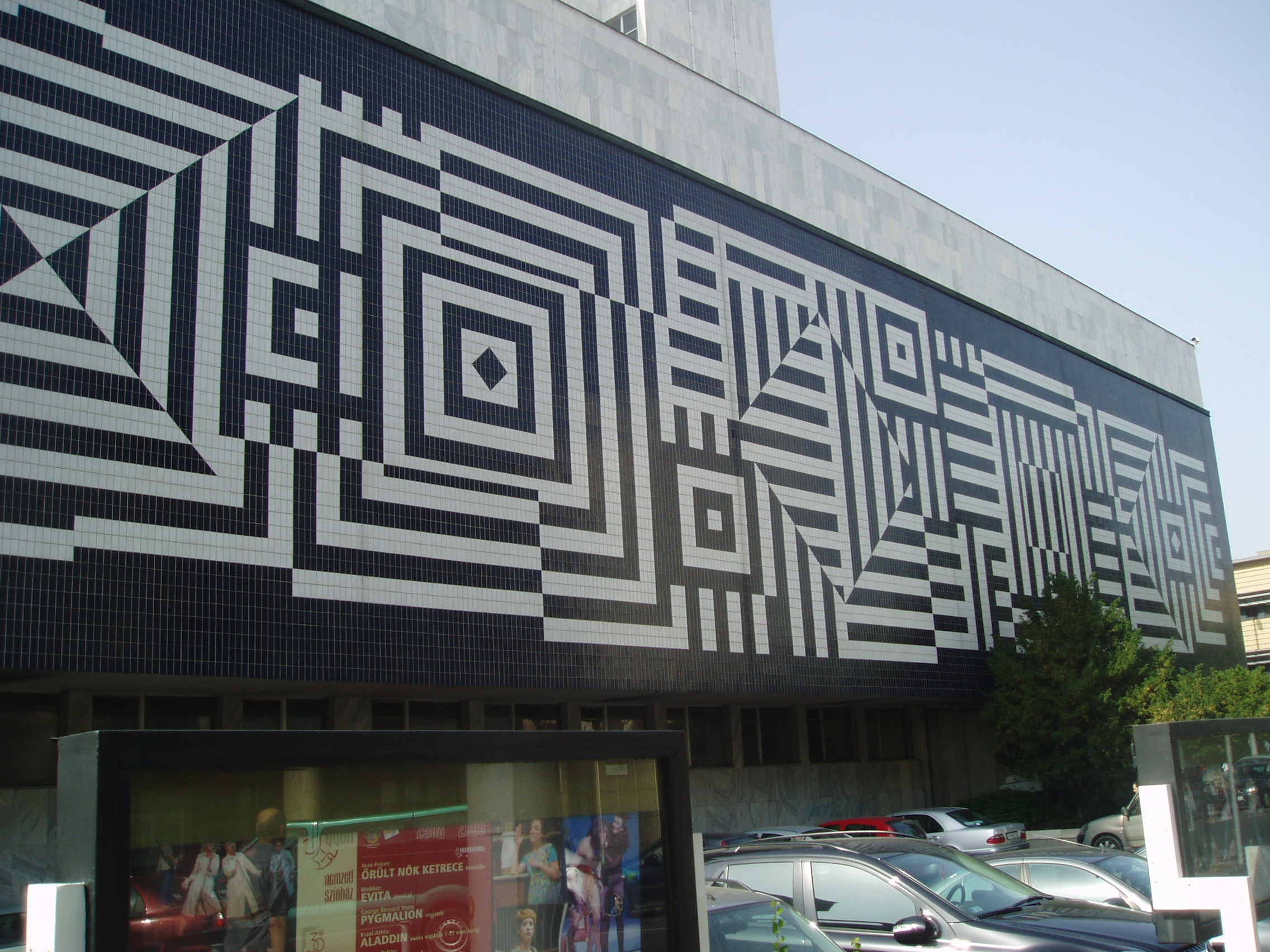 Nyilvános 1108 | 1551 | Győr, Czuczor Gergely utca 7. | Az 1978-ban átadott színházépület az első méltó otthona az 1768 óta többnyire egészen mostoha körülmények között helytálló győri színművészetnek. Terveit a Győri Tervező Vállalat készítette, Vincze Kálmán vezetésével. Látványos külső falburkolatát a magyar származású Victor Vasarely tervei alapján valósították meg. Az épület felavatása után hamarosan, 1979-ben megalakult Markó Iván vezetésével a Győri Balett, amely rövid idő alatt a világ élvonalába került. Vezetője 1991 óta az alapító tagok közé tartozó Kiss János. A felvétel 2008 május végén készült. Felh. irod.: Cziglényi László: Győr. Bp. Panoráma, 1981 www.gyoribalett.hu |