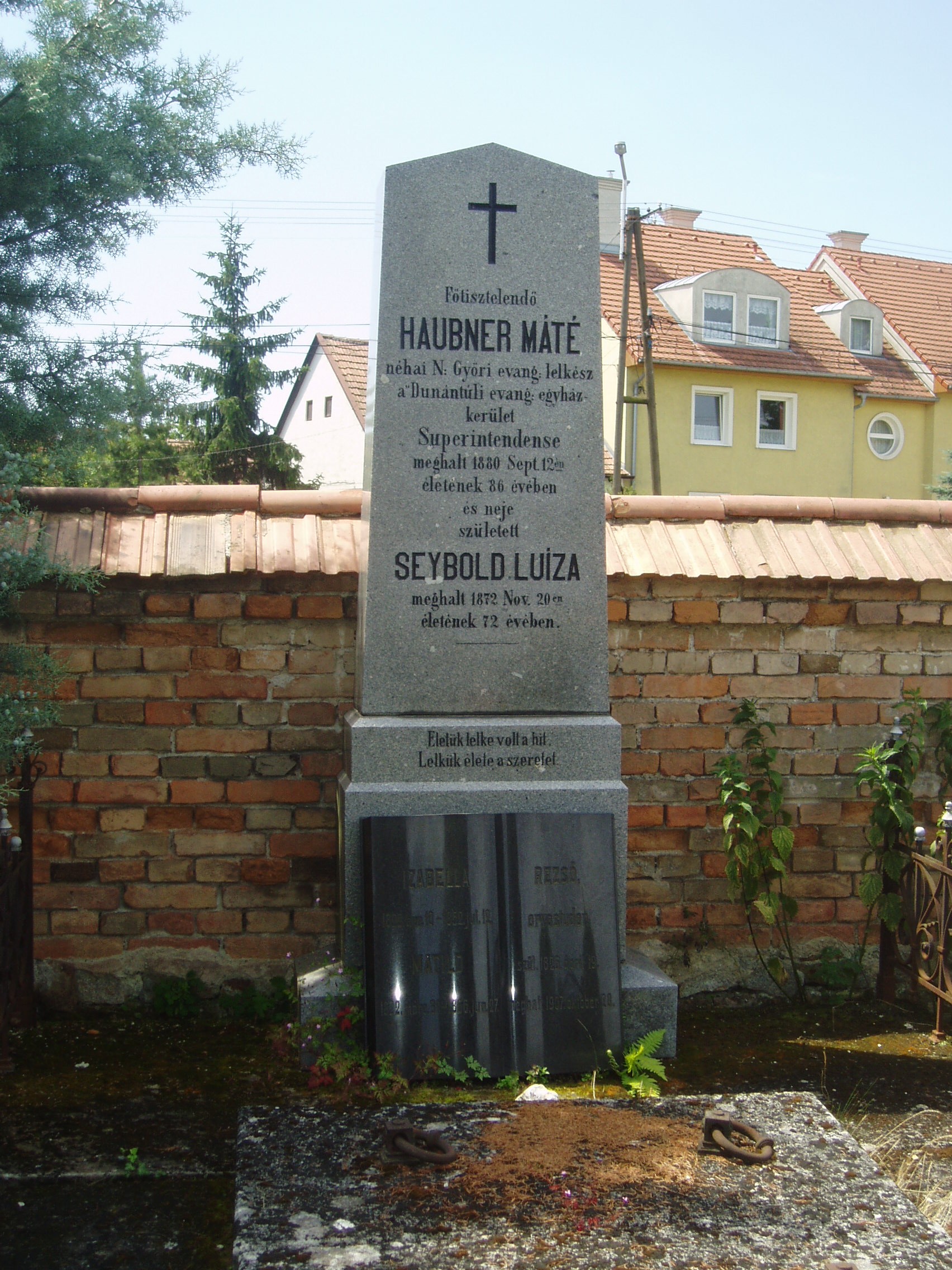 Nyilvános 1200 | 4152 | Sopron, Balfi út. Evangélikus temető. Haubner Máté sírja | A soproni evangélikusok 1674-ben nyitották meg temetőjüket, korábban a katolikusokkal együtt a Szent Mihály temetőbe temetkeztek. Haubner Máté (1794-1880) győri evangélikus lelkész volt. 1848/49-ben játszott szerepe miatt két évet Kufsteinben raboskodott. Élete alkonyát Sopronban töltötte. Vagyonát a dunántúli evangélikus egyházkerületi lelkész- és tanítóözvegyek és árvák gyámolítására hagyományozta. A fénykép 2008 júniusában készült. Felh. irod.: A Pallas nagy lexikona |