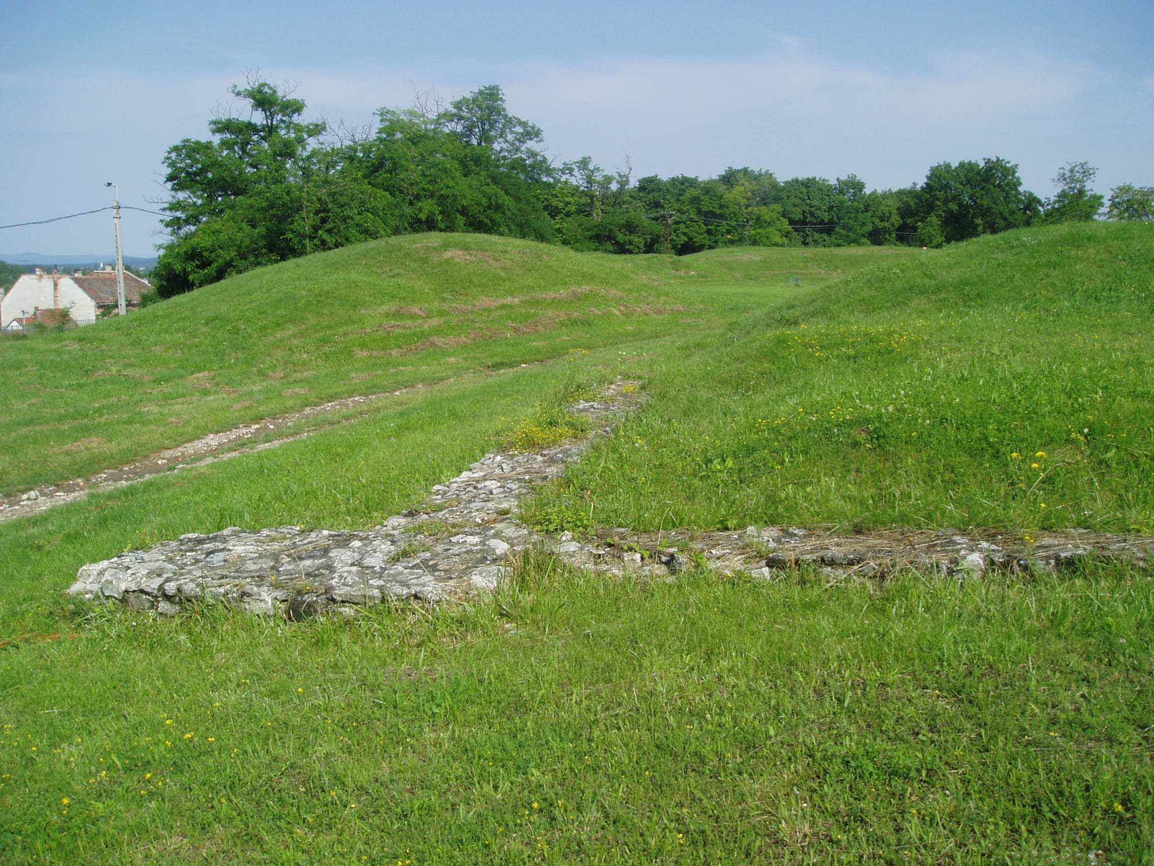 Nyilvános 1168 | 4123 | Sopron, Bécsi domb: Nemesis-szentély | Az amfiteátrum (lásd az előző képen) város felőli bejáratánál emelkedett a Nemesis-szentély. A mai Sopron helyén fekvő ókori települést az i. e. I. század elején alapították, központja a mai városközpont helyén volt. A fénykép 2008 júniusában készült. Felh. irod.: Czellár Katalin: Sopron. 3. jav. kiad. Bp. Panoráma, 2000 |