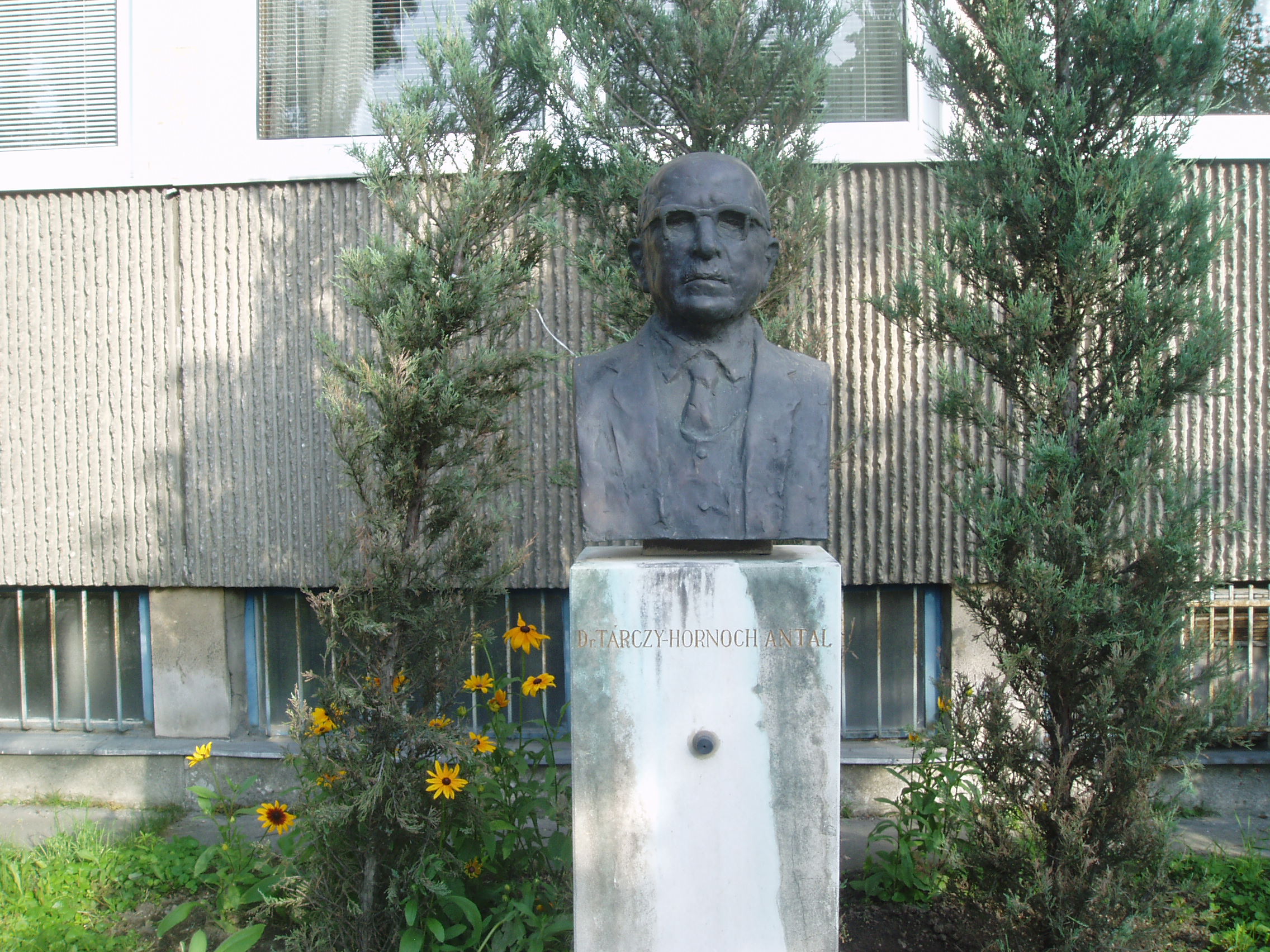 Nyilvános 1105 | 1714 | Sopron, Csatkai Endre utca 6-8. | A modern épületben a Magyar Tudományos Akadémia Geodéziai és Geofizikai Kutatóintézete működik. Az itt dolgozó mintegy 35 kutató geodéziai és geofizikai alapkutatásokban vesz részt. Homlokzatán 1990-ben avatták fel dr. Tárczy Hornoch Antal (1900-1986) emléktábláját. A bányamérnök, egyetemi tanár, akadémikus a magyar bányamérési, földmérési és geofizikai tudományok és hagyományok elhivatott hirdetője és oktatója volt. Kezdeményezésére indult meg Sopronban 1949-ben az önálló földmérőmérnök, 1951-ben pedig a geofizikus-mérnök képzés. Mellszobor is őrzi emlékét, alkotója Varga Éva. A fénykép 2008 júniusában készült. Felh. irod.: http://www.ggki.hu |
