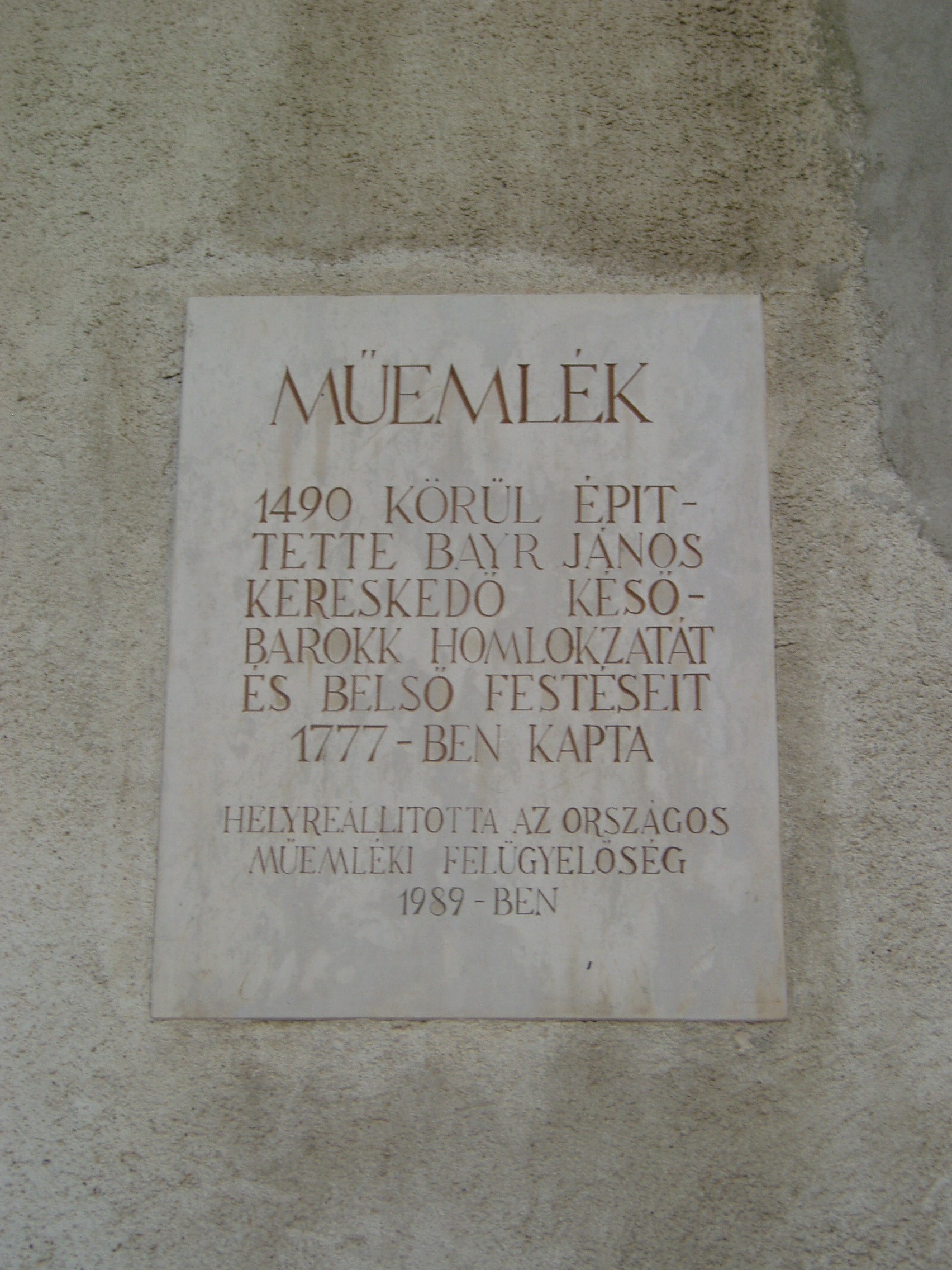 Nyilvános 1111 | 1448 | Fő tér 3. Gambrinus-ház | A XV. század elején épült házat 1422-ben Zsigmond király adományozta Sopronnak városháza céljára, ez is maradt egészen 1496-ig. A XVII. század elején átalakították. Az évszázadok során sok család váltotta egymást a ház birtoklásában. 1827-ben Reichenhaller Gottlieb örökölte; ő az épületet a Patika-háztól (lásd: Fő tér 2.) elválasztó kis közt megvette és részben beépítette. 1914-ben ívbe foglalt hármasablakot alakítottak ki a földszinten. Az épület történetéhez tartozik, hogy itt írta le Guggelweit János városi jegyző a XV. században az ún. Soproni virágéneket, amelynek kéziratát ma a városi levéltár őrzi. Az épület kapujának keretezése 1620-ból származik. Az erkély nyílásai mögött a legutóbbi restauráláskor előkerült gótikus ablaksor maradványai láthatóak. Az ettől balra látható az 1827-ben hozzáépített kiegészítés. A ház keresztboltozattal lefedett kapualjában csúcsíves kettős ülőfülke van, udvarában pedig középkori konzolsor maradványai láthatók. Az épületben ma a Gambrinus étterem működik. A kép 2008 júniusában készült. Felh.irod.: Czellár Katalin: Sopron. 3. jav. kiad. Bp. Panoráma, 2000 |