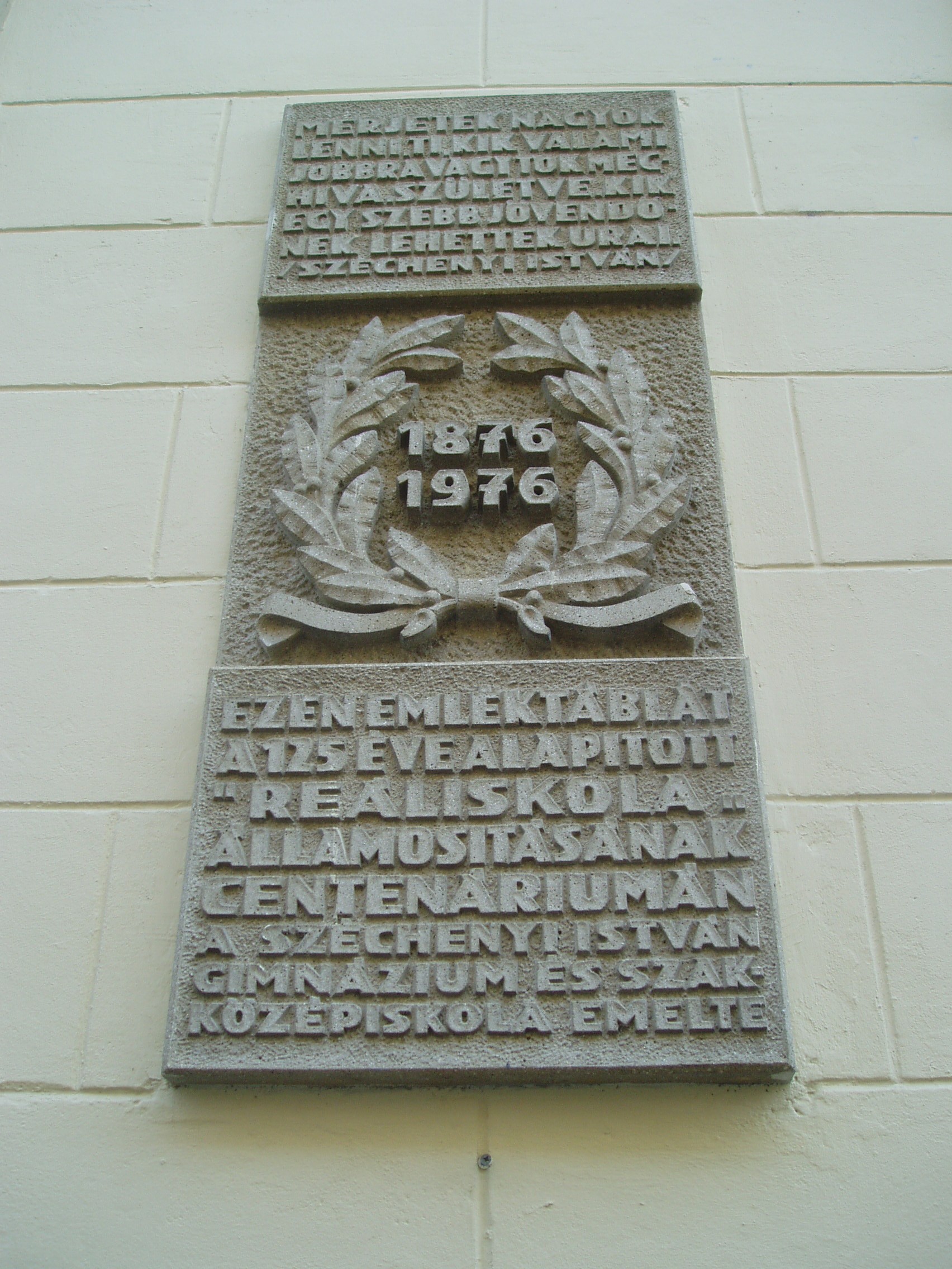 Nyilvános 1094 | 1581 | Sopron, Liszt Ferenc utca 1. | A Széchenyi István Gimnázium eredetileg reáliskola volt, amelyet 1850-ben alapítottak (lásd: Liszt Ferenc utca 2.). A Liszt Ferenc utca sarkán álló épületrészét, amelynek ezen a képen az udvari része látható, 1872-ben építették. Az épület Templom utca felőli oldalán állították a képen látható emléktáblát. Felh. irod.: http://szig.sopron.hu/ |