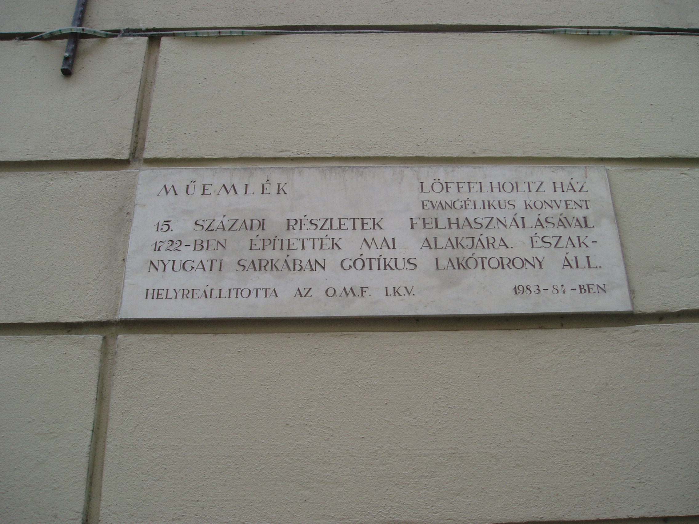 Nyilvános 1066 | 1437 | Sopron, Szent György utca 14. Evangélikus konventház. | A középkori eredetű egyemeletes barokk lakóház jelenlegi külsejét a XVIII. század első negyedének vége felé kapta. Ez volt a soproni evangélikus gyülekezet ún. Gemein–Haus épülete, azaz a konventház. Eredetileg a szomszéd házat (lásd: Sopron, Szent György utca 12.) is birtokló Eggenberg hercegné tulajdona volt, aki halálakor az evangélikus egyházra hagyta, amely később azt Löffelholtz bárónénak adta el. A báróné, aki Jókai Mór regényében, A lőcsei fehér asszonyban játszik szerepet, az ingatlant ismét az evangélikus konventre hagyományozta. Udvarában gótikus torony áll. Ebben a házban lakott Wohlmuth János (1643–1724) zeneszerző és orgonaművész. Valószínűleg ő volt a zenetanára Stark Jánosnak, egy helybeli fogadós (lásd: Sopron, Várkerület 55.) fiának. A feltételezések szerint a ma Stark–féle virginálkönyvként számon tartott kézirat táncait és egyéb kisebb darabjait Wohlmuth kottázta le a Stark–fiú számára, mintegy hangszeriskolaként. A katolikus főúr, Esterházy Pál nádor — maga is kiváló muzsikus, a Harmonia Caelestis szerzője — is rá, az evangélikus orgonistára bízta fiai hangszeres tanítását. A kép 2003-ban készült. Felh. irod.: Czellár Katalin: Sopron. 3. jav. kiad. Bp. Panoráma, 2000 Bárdos Kornél: Sopron zenéje a 16–18. században. Bp. Akadémiai Kiadó, 1984 Payr Sándor: Wohlmuth János. = Sopronvármegye, 1929. I–II |