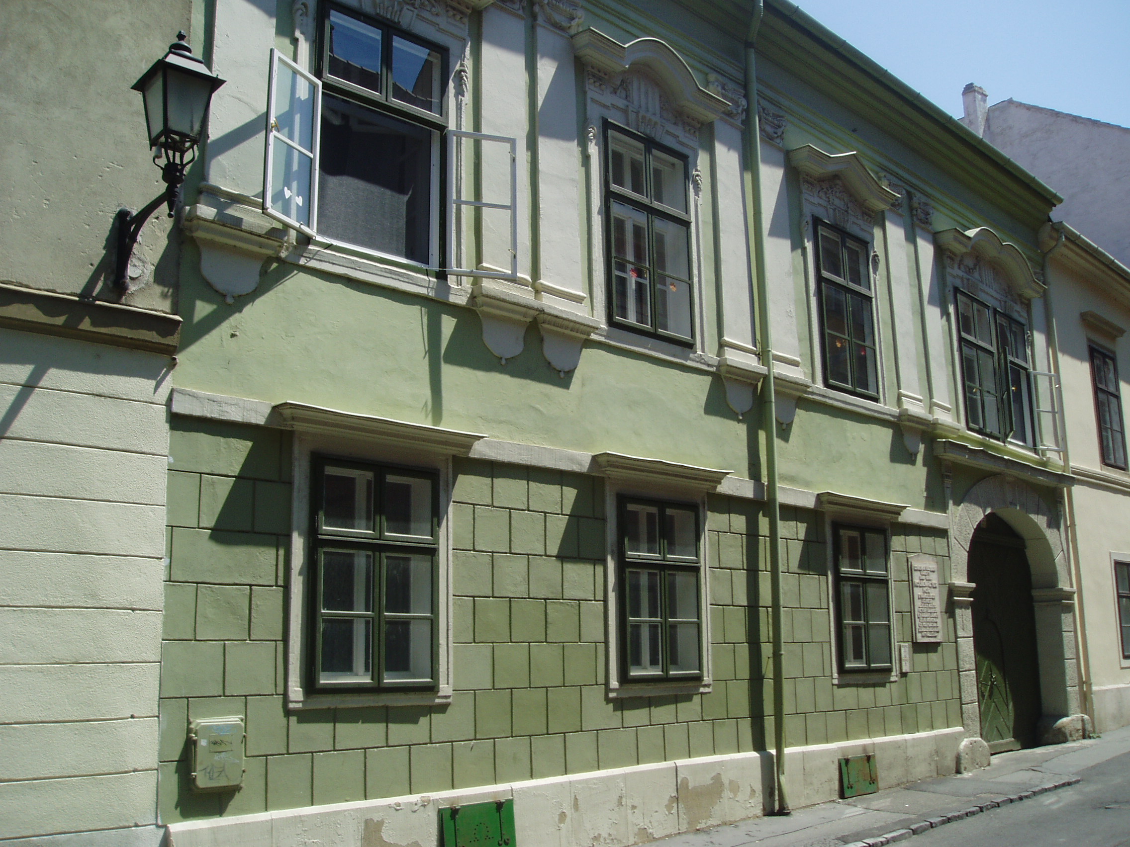 Nyilvános 1045 | 1532 | Sopron, Templom utca 17. | A Templom utca 12. számú épülethez hasonlóan ez a ház is evangélikus paplak volt. A barokk lakóház a XVII. században épült, mai alakját az 1710-es években kapta. Tulajdonosa volt 1738-ban Lőw Frigyes neves botanikus és orvos, valamint 1776-tól Örtl Károly, Sopron város levéltárának első rendszerezője. Az Örtl család ajándékozta 1831-ben a soproni evangélikus egyházközségnek. 1846 és 1884 között itt lakott Kolbenheyer Mór lelkész, költő, aki magyar költők műveit - így például Arany Toldi-trilógiáját - fordította németre. 1848-ban gyújtó hangú beszédben állt ki a szólásszabadságért s tagja lett a Batthyány miniszterelnök rendeletére megalakult soproni "Bizottmányi Választmány"-nak. Az osztrákok letartóztatták s a szabadságharc idején hónapokig bebörtönözve tartották. A kép 2008 júniusában készült. Felh. irod.: Czellár Katalin: Sopron. 3. jav. kiad. Bp. Panoráma, 2000 Sarkady Sándor: A soproni nemzetőrség 1848-ban. Sopron, Edutech, 1998 |