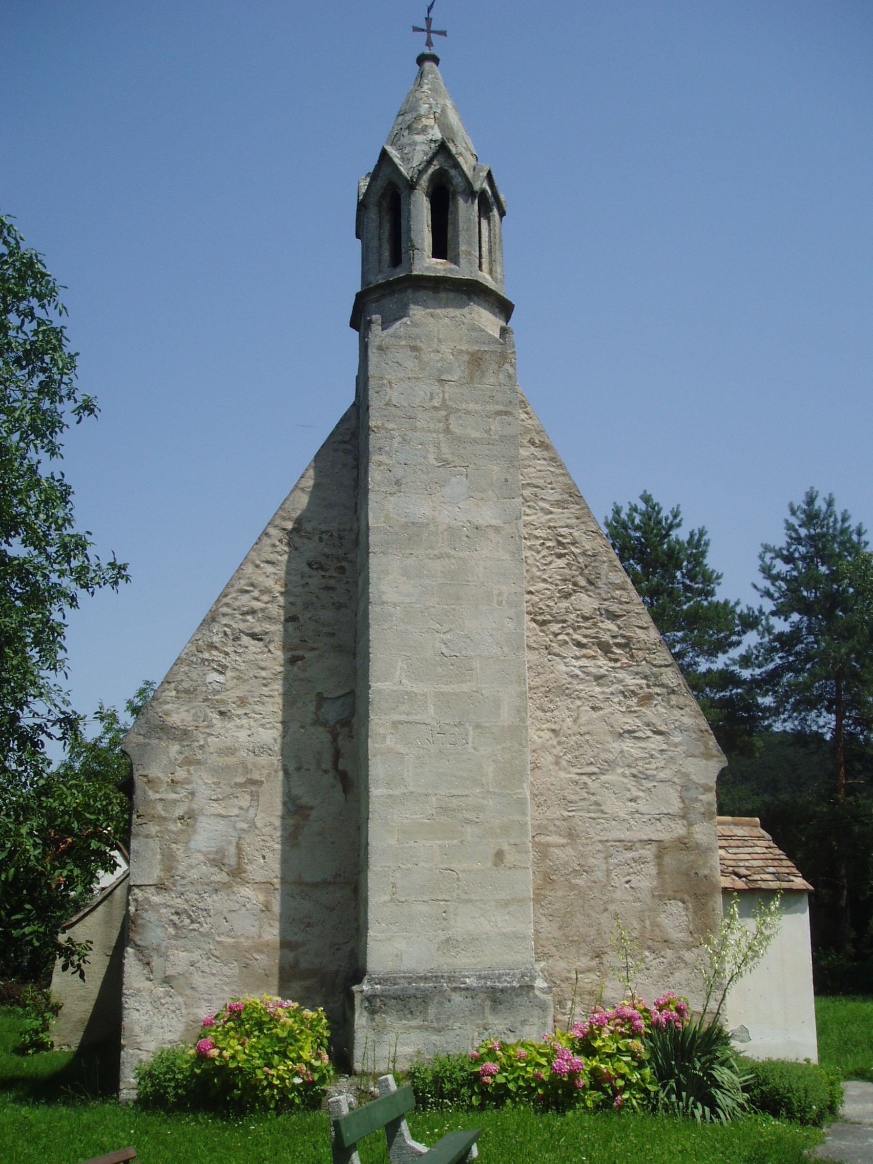 Nyilvános 1196 | 1969 | Sopronbánfalva: Bánfalvi út: Mária Magdolna-templom | A kis templom a falu egyik legértékesebb műemléke. 1291 előtt épült. Gótikus tornya a XIV. század elejéről származik, ugyancsak gótikus szentélye pedig a XV. századból. A kép 2008 júniusában készült. Felh. irod.: Czellár Katalin: Sopron. 3. jav. kiad. Bp. Panoráma, 2000 |