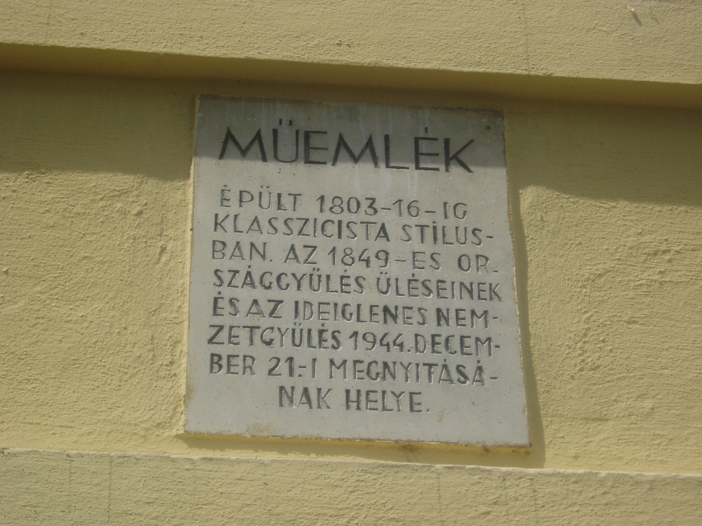 Nyilvános 1174 | 1667 | Debrecen, Széchenyi utca 1. | A Podmaniczky-ház Debrecen patinás épülete, a Piac utca és a Széchenyi utca sarkán áll. Nevét gróf Dégenfeld József, Hajdú vármegye és Debrecen főispánja feleségéről, Podmaniczky Annáról kapta. 1820-ban épült klasszicista stílusban. 1849-ben a szabadságharcos magyar kormány debreceni tartózkodásának idején e ház emeleti dísztermében tartotta üléseit az országgyűlés főrendi háza, amint arról az épületen emléktábla is tanúskodik. Az épületen elhelyezték az utcanévadó Széchenyi István emléktábláját is, aki többször is járt Debrecenben. Fiatal huszártisztként Simonyi óbester ezredében szolgált, 1840-ben pedig a Tisza szabályozásának ügyében tartózkodott a városban. Felh. irod.: Papp Antal: Debrecen. Bp. Panoráma, 1976 Kovács Gergelyné: Debrecen. Bp. Panoráma, 1981 www.debrecen.hu |
