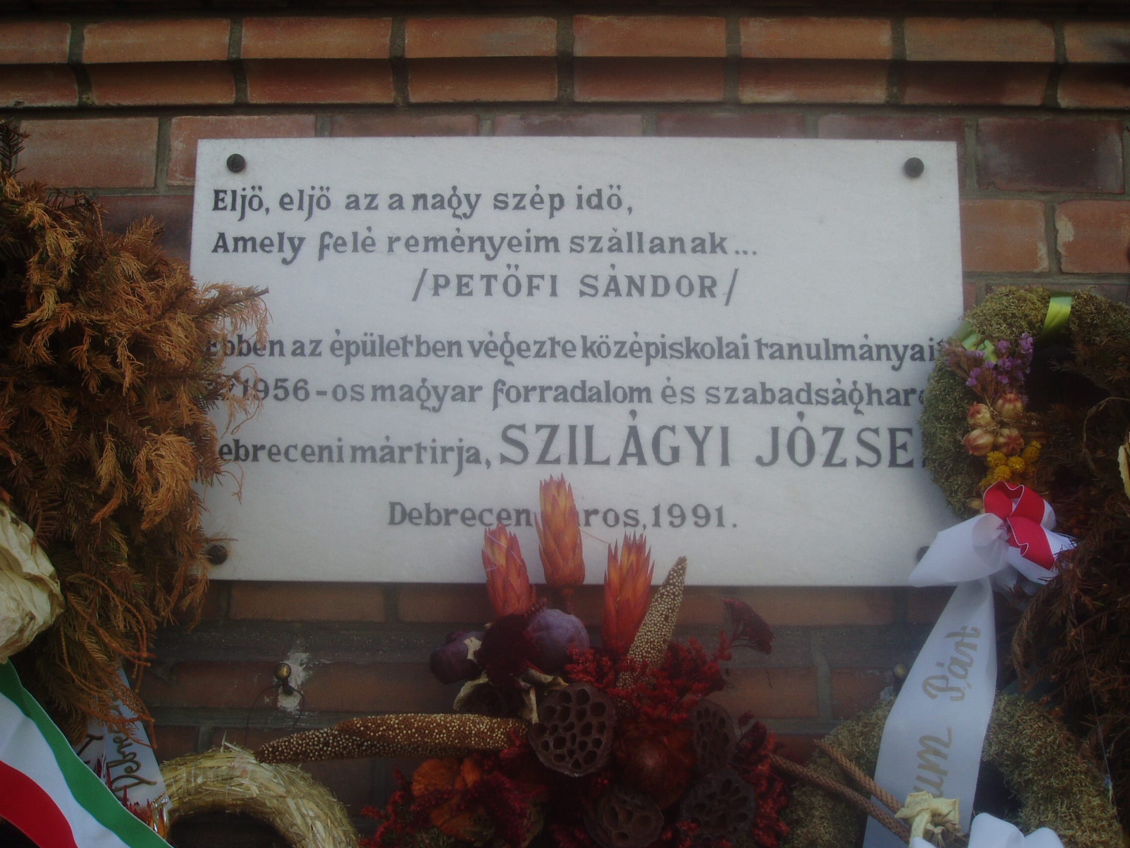 Nyilvános 1112 | 1698 | Debrecen, Péterfia utca 1-7. | A Kölcsey Ferenc Református Tanítóképző Főiskola mostani otthona 1911-13 között épült Petz Samu tervei alapján. Korábban itt a főgimnázium működött. Ide járt iskolába és itt is érettségizett a debreceni születésű Szilágyi József (1917-1958) politikus, aki 1944 végén rövid ideig Debrecen rendőrkapitánya is volt. 1956-ban megszervezte és vezette Nagy Imre miniszterelnöki titkárságát. November 4-én családjával együtt a jugoszláv követségre menekült, majd őt is Romániába internálták. Snagovban tartóztatták le. A Nagy Imre per vádlottjaként 1958. április 24-én kivégezték. A fénykép 2006 júniusában készült. Felh. irod.: www.kfrtkf.hu/index3.html Magyar életrajzi lexikon |