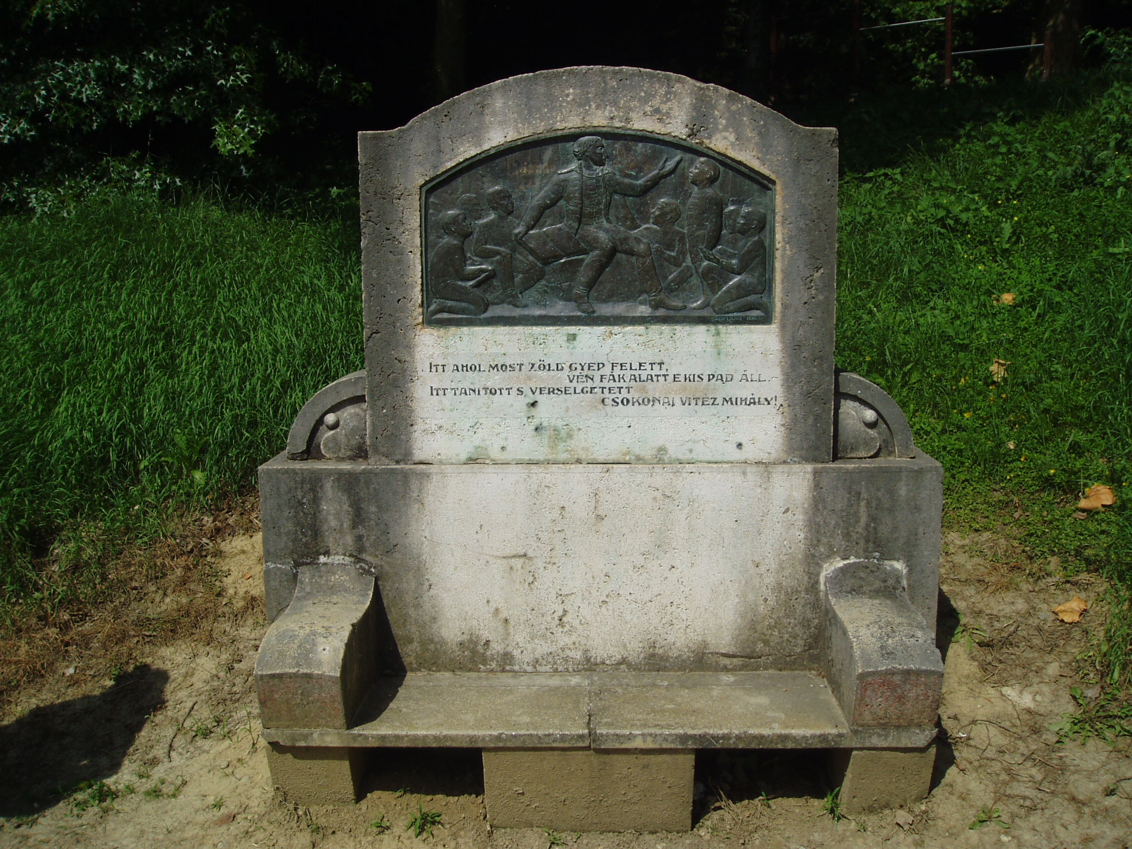 Nyilvános 1187 | 2309 | Csurgó, Széchenyi tér 9. | A Csokonai Vitéz Mihály Református Gimnázium és Általános Iskola mai épülete az egykori vadasparkban áll. A nagy kiterjedésű, 4 hektárnyi parkban nyolcvan féle, ritkaságszámba menő növényfaj él. A látogatót együttesen ragadja meg a patinás iskola látványa, a hatalmas ősfák közötti sétányok hangulata és a neves egyéniségek tiszteletére állított emlékek együttese. A park távolabbi részén, a gimnázium háta mögött állították fel 1936-ban Csokonai Vitéz Mihály emlékpadját. A költő 1799 őszétől 1800 májusáig működött segédtanárként a csurgói gimnáziumban. Bár szeretett volna állandó alkalmaztatást, hogy Lilláját feleségül vehesse, még Sárközy István és Festetics György támogatásával is csak egy helyettesítő tanári állást kapott arra az időre, amíg a posztra kiszemelt tanár hazaérkezik külföldről, befejezve kinti egyetemi tanulmányait. Korabeli visszaemlékezésekből kirajzolódik előttünk a tanár Csokonai alakja. Csokonai az akkori gyakorlathoz képest teljesen rendhagyó módon tanított. Előadásai olyan érdekfeszítőek voltak, személyiségének kisugárzása olyan erős volt, hogy az akkoriban szokásos fegyelmezési eszközökhöz soha nem kellett folyamodnia. Óráit gyakran a szabadban tartotta, ahol természetes emberi közvetlenséggel beszélgetett diákjaival. S hogy ez a kedvenc helye hol volt, azt diákok és tanárok emlékezete őrizte nemzedékről nemzedékre. Itt, a park egy rejtett dombhajlatában állították fel 1936-ban a költő emlékpadját. A fénykép 2004 októberében készült. Felh. irod.: Horváth József: Csurgó. Műemlékek. Bp. Tájak, Korok, Múzeumok Kiskönyvtára 441. 1982 Csurgói kalauz. Szerk. Terényi Zoltán. 1974 Látnivalók Somogy megyében. Miskolc, Well-PRess Kiadó, 2000 www.vendegvaro.hu |