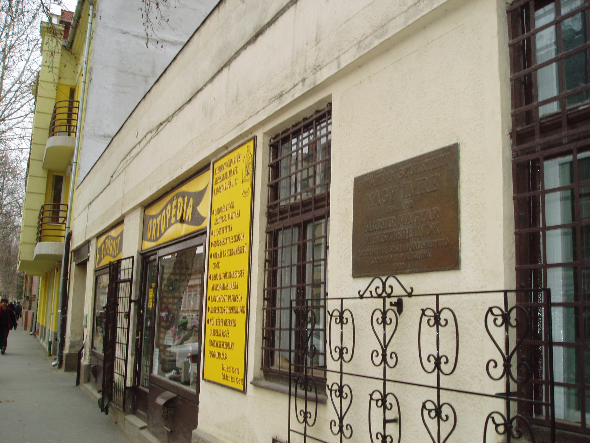 Nyilvános 1207 | 2217 | Kaposvár, Fő utca 77. | Kaposvár hosszú főutcájának a városközponttól távolabbi részén ma is álló kis házban született Nagy Imre mártír miniszterelnök 1896. június 7-én. Emléktábláját 1989-ben, rehabilitálásának évében helyezték el. 1996-ban, a forradalom 40. évfordulójára szobrot is állítottak emlékére a Megyeháza előtt, az 56-os emlékmű mellett (Paulkovics István alkotása). Nagy Imre református szegényparaszti családból származott. Apja postai szerelőmunkás volt. Anyja, mielőtt férjhez ment volna, a somogyi alispánnál cselédlányként szolgált. Tanulmányait a 4 elemi (lásd: Kaposár, Fő u. 44.) és a 4 polgári osztályig végezte, mert 1912-ben saját elhatározásból elhagyta kaposvári gimnáziumot és géplakatos segédnek állt. A segédi oklevelet 1914-ben szerzete meg, majd a tanulmányait folytatandó beiratkozott a kaposvári felső kereskedelmi iskolába. Ezt már nem tudta elvégezni, mert 1915 májusában behívták katonának. A Monarchia katonájaként 1918-ban az orosz fronton fogságba esett. Politikai pályafutása ekkoriban kezdődött el. A fénykép 2006 márciusában készült. Felh. irod.: Látnivalók Somogy megyében. Miskolc, Well-PRess, 2000 hu.wikipedia.org/wiki/Nagy Imre |