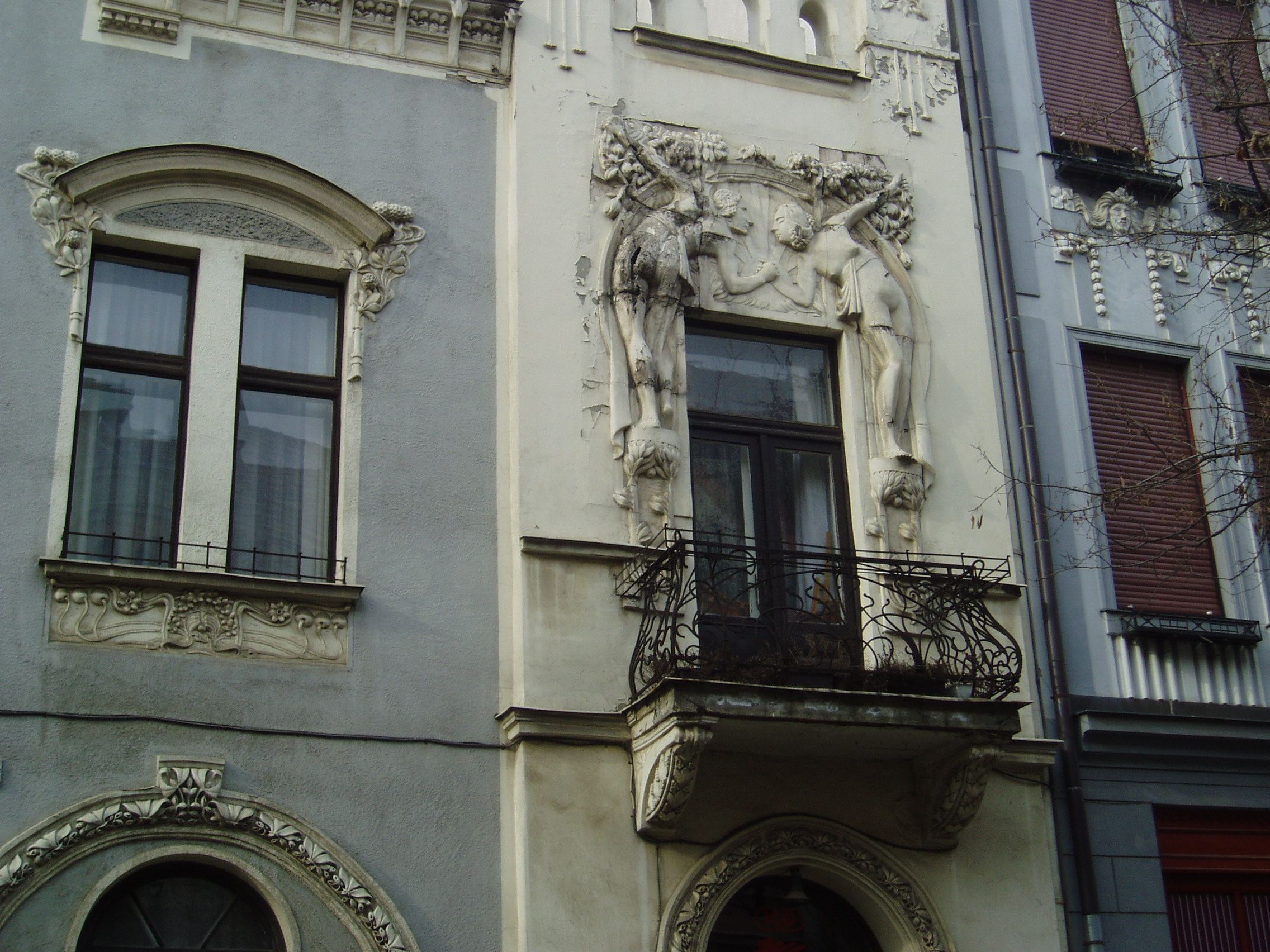 Nyilvános 1144 | 2463 | Kaposvár, Kontrássy utca 4. | Kontrássy Ferenc ügyvéd vagyonát a városra hagyva tette lehetővé a róla elnevezett utca megnyitását. A város legszebb szecessziós épületei találhatók itt. A 4. számú ház a magyar szecesszió kiemelkedő műve, 1912-ben épült. Homlokzatát Csikász Imre veszprémi szobrászművész készítette. A város lakói között annakidején nagy felháborodást keltett a meglehetősen hiányos öltözékű, Ádámot és Évát ábrázoló homlokzati díszítés... A fénykép 2006 márciusában készült. Felh. irod.: Kaposvár és környéke. Kaposvár, Infomark, 2002 Látnivalók Somogy megyében. Miskolc, Well-PRess, 2000 /Vendégváró/ |