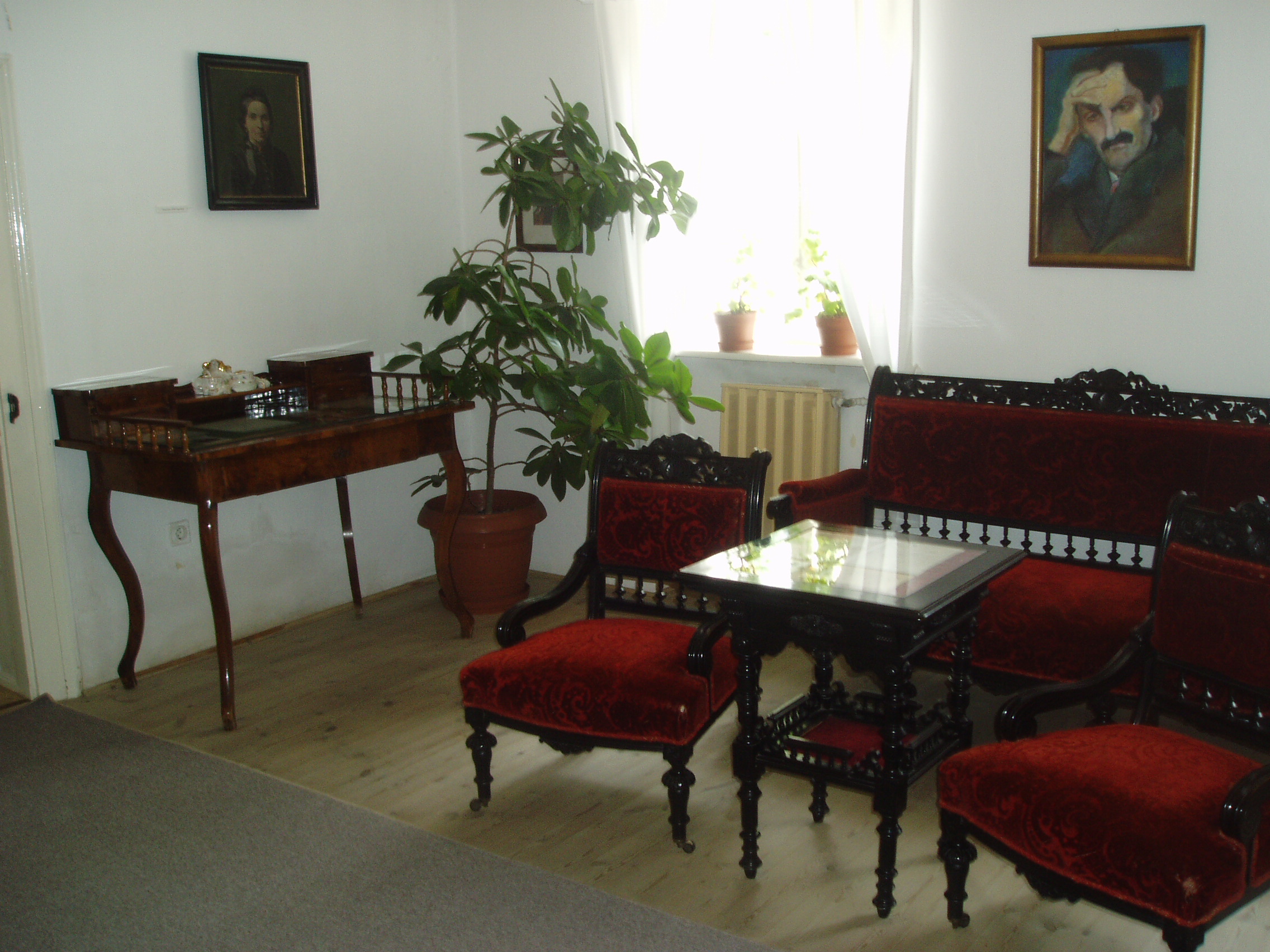 Nyilvános 1585 | 3624 | Szekszárd, Babits Mihály utca 13. Babits Mihály Emlékház | Babits Mihály egyemeletes, copf stílusú szülőháza a XIX. század elején (egyes források szerint 1780 körül) épült az akkor a város védőszentjéről Szt. Lászlónak nevezett utcában. A költő anyai nagyapja 1852-ben, szekszárdi letelepedésekor vásárolta meg. Itt született a költő 1883. november 26-án, s sokat tartózkodott és alkotott ezen a helyen. 1967-ben rendezték meg a házban az első emlékkiállítást, amelyet 1983-ban, a költő születésének centenáriumán újjáalakítottak, s az egész épületet emlékháznak rendezték be. A költő relikviái, a család bútorai, használati tárgyai és dokumentumai mellett láthatók Farkas Pál, Rippl-Rónai József, Glatz Oszkár és Beck Ö. Fülöp Babitsot ábrázoló képzőművészeti alkotásai is. Babits Mihály számos verse itt született, és itt játszódik a Halálfiai című regény több fejezete is. Az épület udvarán 1981-ben avatták fel Babits Mihály szobrát, Farkas Pál alkotását. Babits szülőházában állandó kiállítás idézi a szintén szekszárdi születésű Dienes Valéria filozófus és Baka István költő, író emlékét. A fénykép 2006 júliusában készült. Felh. irod.: www.szekszard.hu www.museum.hu Töttős Gábor: Babits bölcsői körül. = Tolna Megyei Levéltári Füzetek 6. Szekszárd, 1977 |