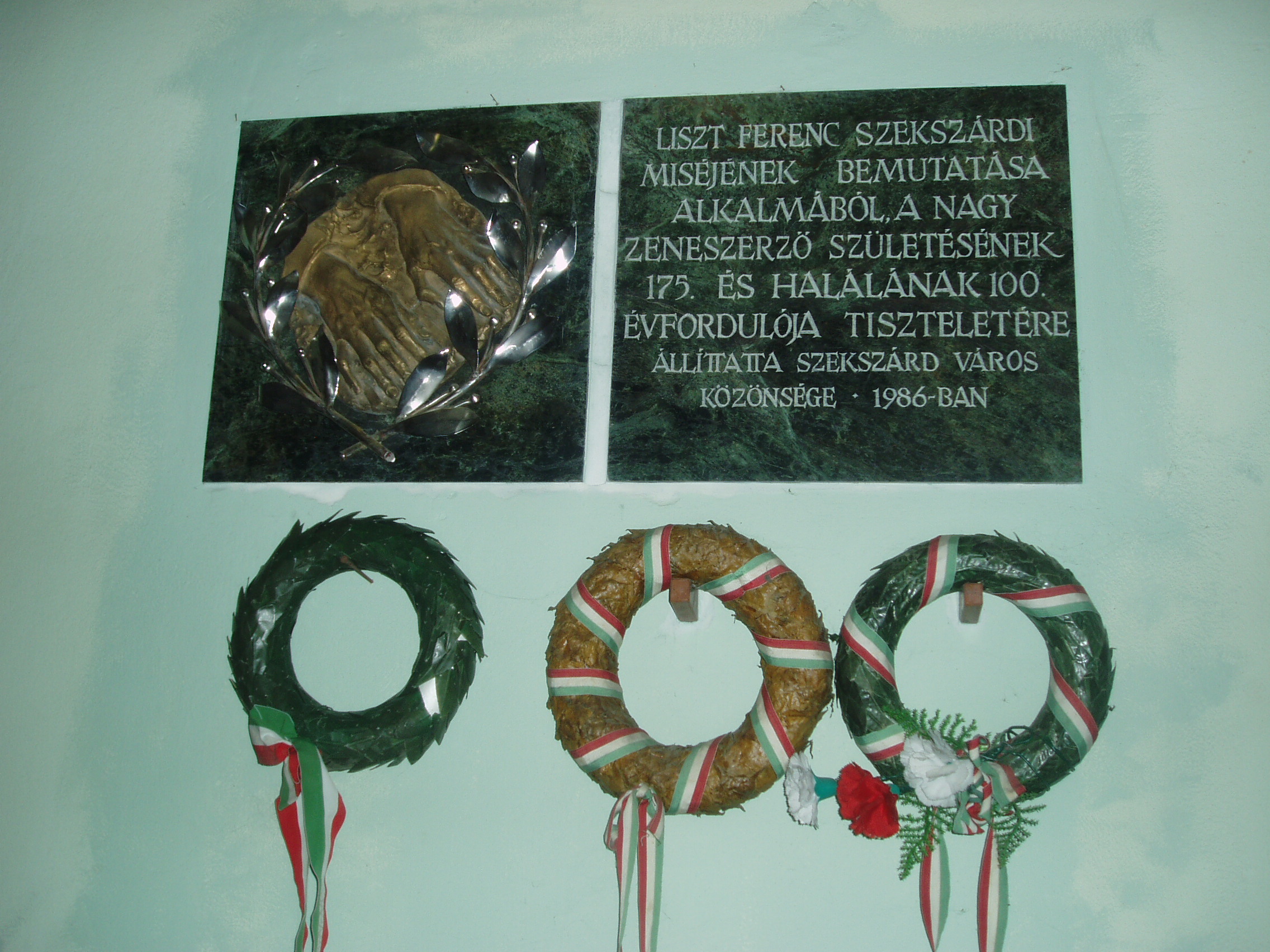 Nyilvános 1191 | 1690 | Szekszárd, Pázmány tér 6. Újvárosi templom | A neogót stílusú római katolikus templom Hrabovszky Péterné Kassay Anna alapítványából épült 1864 és 1868 között. Terveit a grazi Hans Petschnigg készítette. Az alapítvány ügyeit Augusz Antal vezette, ő felügyelte az építkezést és megnyerte személyes jó barátját, a szekszárdi házában (lásd: Szekszárd, Széchenyi u. 36–38.) több ízben vendégeskedő Liszt Ferencet, hogy a templom felszentelésére misét írjon. A Szekszárdi mise ősbemutatójára sok hátráltató körülmény miatt végül Jénában került sor 1872-ben, ezért a szakirodalomban Jénai mise néven is említik. A szekszárdi bemutatóra csak 1978-ban került sor e falak között, a Liszt Ferenc Társaság szekszárdi csoportjának kezdeményezésére, amikor a mű vegyeskari változata hangzott fel. Eredeti, férfikari változata 1986-ban, Liszt születésének 175. és halálának 100. évfordulója alkalmából szólalt meg először a templomban. Liszt és a Szekszárdi mise emlékét két dombormű és mellettük emléktábla is megörökíti a templomban. A Szekszárdi misének irodalmi emléket állított a városban született Baka István Graves–díjas író 1984-ben megjelent kisregényében, melynek főhőse Séner János, a Szekszárdi Dalárda egyik alapító tagja. A "Szekszárdi mise" című kisregény cselekménye e mű partitúrája körül forog. Utolsó jelenete itt, az Újvárosi templomban játszódik. A fénykép 2006 júliusában készült. Felh. irod.: Töttős Gábor: Szekszárd. Bp. Panoráma, 1986 Töttős Gábor: Irodalmi séták Szekszárdon. [s.l.] 1985 Hadnagy Albert: Liszt szekszárdi kapcsolatai. Szekszárd, Tolna Megyei Tanács levéltára, 1969 |