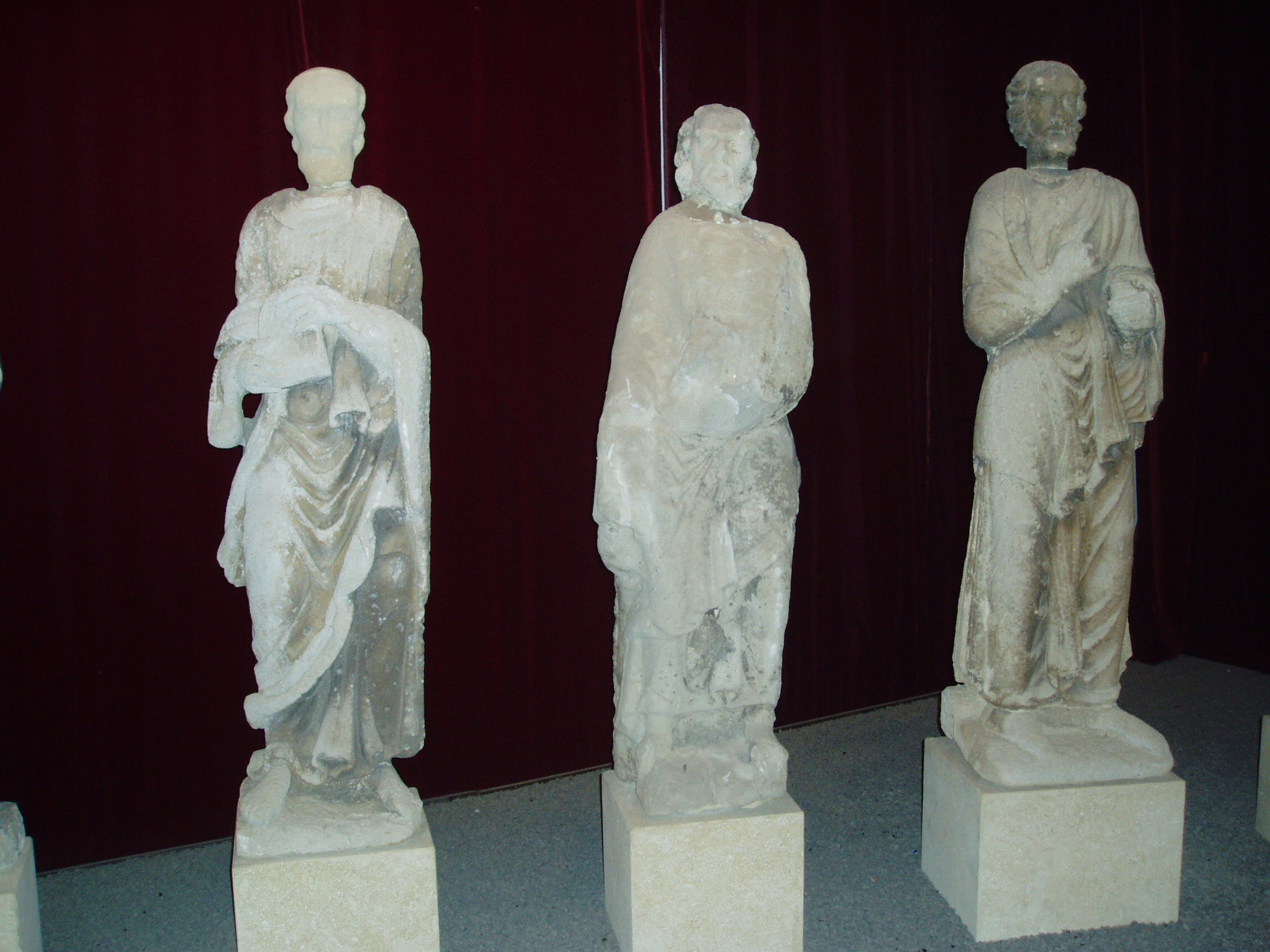 Nyilvános 1110 | 1792 | Szombathely, Kisfaludy utca 9. Savaria Múzeum | Az érdeklődő a Savaria Múzeum nagytermében tekintheti meg a jáki templom (lásd: Ják, Templom) eredeti homlokzati szobrait, amelyek Krisztust és a tizenkét apostolt ábrázolják. Az életnagyságú szobrok a magyarországi későromán szobrászat kiemelkedő alkotásai. Eredetileg a templom kapuépítményének homlokzatát díszítették, lépcsőzetesen elhelyezve, oszlopokkal elválasztott, karéjos záródású fülkékben állva. Jákon jelenleg pontos másolataik láthatók. Kicserélésük oka a nagyértékű szobroknak az időjárás viszontagságaitól való megvédése volt. A jáki apátsági templom, az egykori jáki bencés apátság monumentális bazilikája a magyarországi román stílusú építészet kiemelkedő, szinte szimbolikus alkotása. A hazai középkori nemzetségi monostorok egyedülálló épségben fennmaradt képviselője, mely művészi gazdagságával, a táj képébe illeszkedő mesteri elhelyezésével hívja fel magára a figyelmet. A fénykép 2006 májusában készült. |