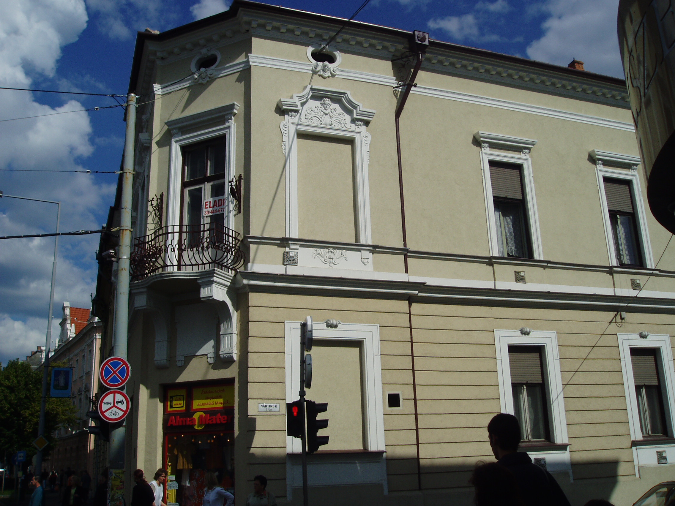 Nyilvános 1283 | 2798 | Zalaegerszeg, Mártírok útja 2. | Ebben a városközponti épületben született 1904. szeptember 6-án Keresztury Dezső (1904-1996) író, irodalomtörténész, kritikus, műfordító, miniszter, akadémikus. Édesapja ügyvéd volt, 1915-18 között a város polgármestere. Elemi iskolai tanulmányait és a gimnázium első négy osztályát szülővárosában végezte. Berlini évek után 1936-43-ban az Eötvös Kollégium tanára, közben 1937-43-ban a Pester Lloyd rovatvezetője volt. 1945-47-ben vallás- és közoktatásügyi miniszter, 1945-48-ban az Eötvös Kollégium igazgatója, 1948 után az MTA főkönyvtárnoka, 1950-71 között az Országos Széchenyi Könyvtár főosztályvezetője, 1985-től a Magyar Irodalomtörténeti Társaság elnöke, majd tiszteletbeli elnöke. 1973-tól az MTA levelező, 1982-től rendes tagja. A kortárs magyar irodalom sokoldalú művelője, a magyar irodalom- és művelődéstörténet elismert kutatójaként számos magyar és nemzetközi társaság tagja, kitüntetettje volt. 1968 után került újra szoros kapcsolatba szülővárosával, amelynek 1975-ben díszpolgára lett. 1993-ban megjelent "Emlékezéseim. Szülőföldjeim" című önéletrajzi kötete itt töltött gyermekkorának emlékeit is felidézi. Egykori iskoláját több alapítvánnyal is támogatta; édesapja szőlőhegyi hajlékát a városnak adományozta, ahol fokozatosan könyvtára is helyet kap, s alkotóházként működik. Szülőházán 1999-ben helyeztek el emléktáblát. A felvétel 2006 júniusában készült. Felh. irod.: Zalai életrajzi lexikon. = http://zalai.dfmk.hu/zalaiak |