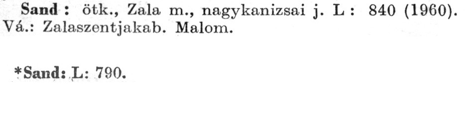 Nyilvános 2417 | 5813 | A szócikkek felismertetett szövege: | (A csillag után az 1972-es kiadású kiegészítő kötetből származó szöveg következik) Sand: ötk., Zala m., nagykanizsai j. L: 840 (1960). Vá.: Zalaszontjakab. Malom. *Sand: L: 790. A szócikkek a következő lexikonból származnak: Cím: Új magyar lexikon Közreműködő: Berei Andor (1900-1979) (szerk.) Szerz. közl.: [szerk. Berei Andor et al.] Kiadás jelzés: 2. lny. Kiadás: Budapest : Akad. K., 1961-1962 Kötetei: 1., A - C 2., D - F 3., G - J 4., K - Me 5., Mf - R 6., S - Z 7. köt., A-Z Kiegészítő kötet (1972) Kiegészítő kötet, 1962÷1980 (1981) ETO jelzet: 03=945.11 Szakjelzet: 030 Cutter: U 28 Nyelv: magyar Megjegyzés: Bibliogr. a címszavak egy részének végén |